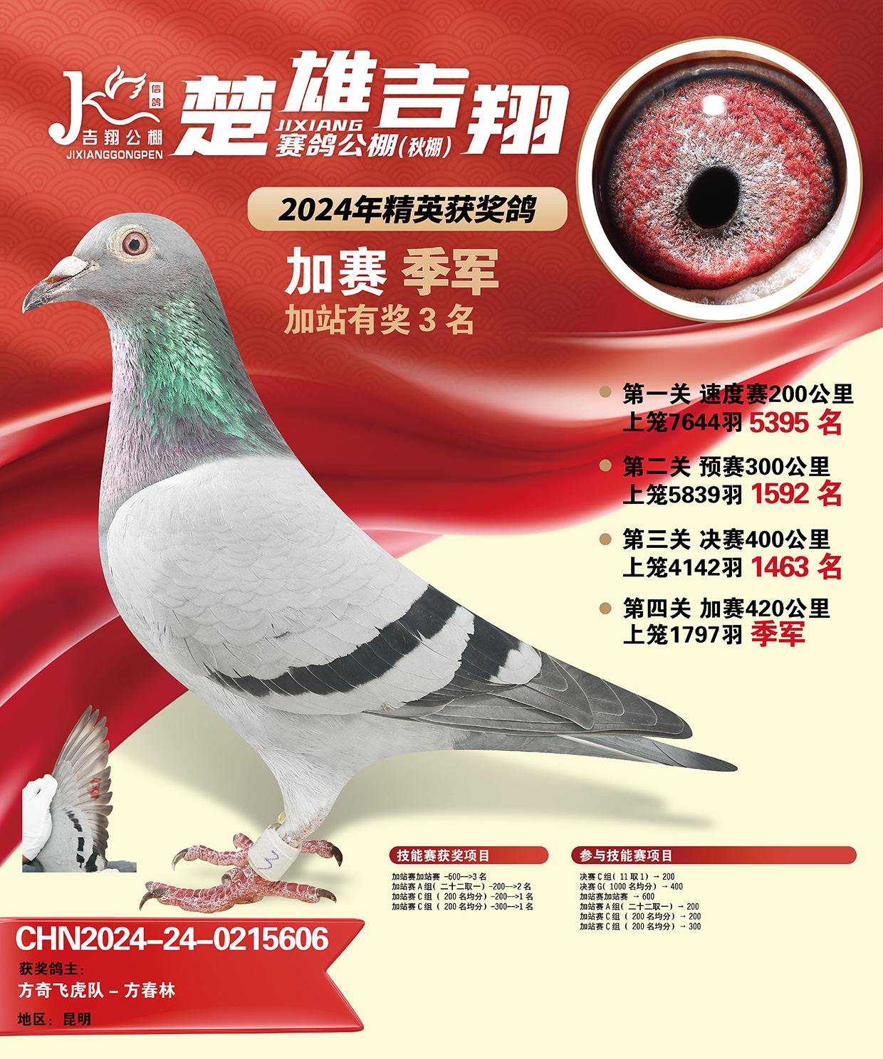 楚雄吉翔养殖有限公司(秋棚)2024年加站赛获奖鸽