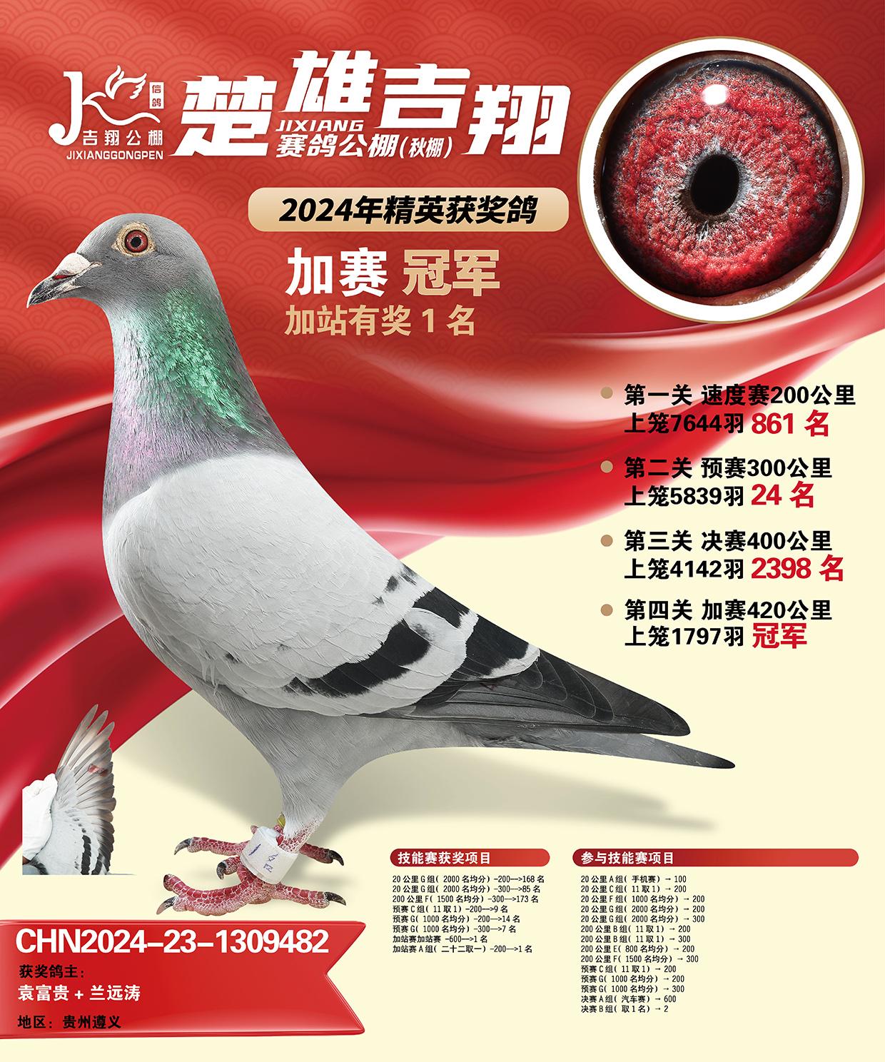 楚雄吉翔养殖有限公司(秋棚)2024年加站赛获奖鸽