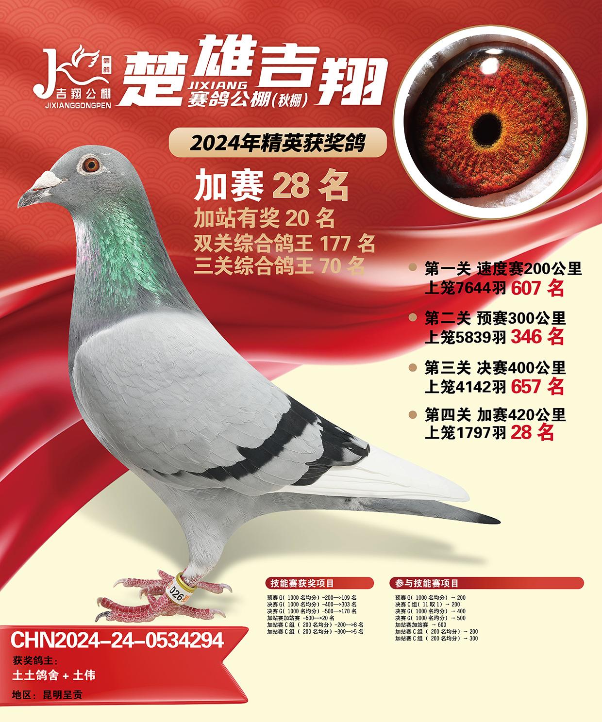 楚雄吉翔养殖有限公司(秋棚)2024年加站赛获奖鸽