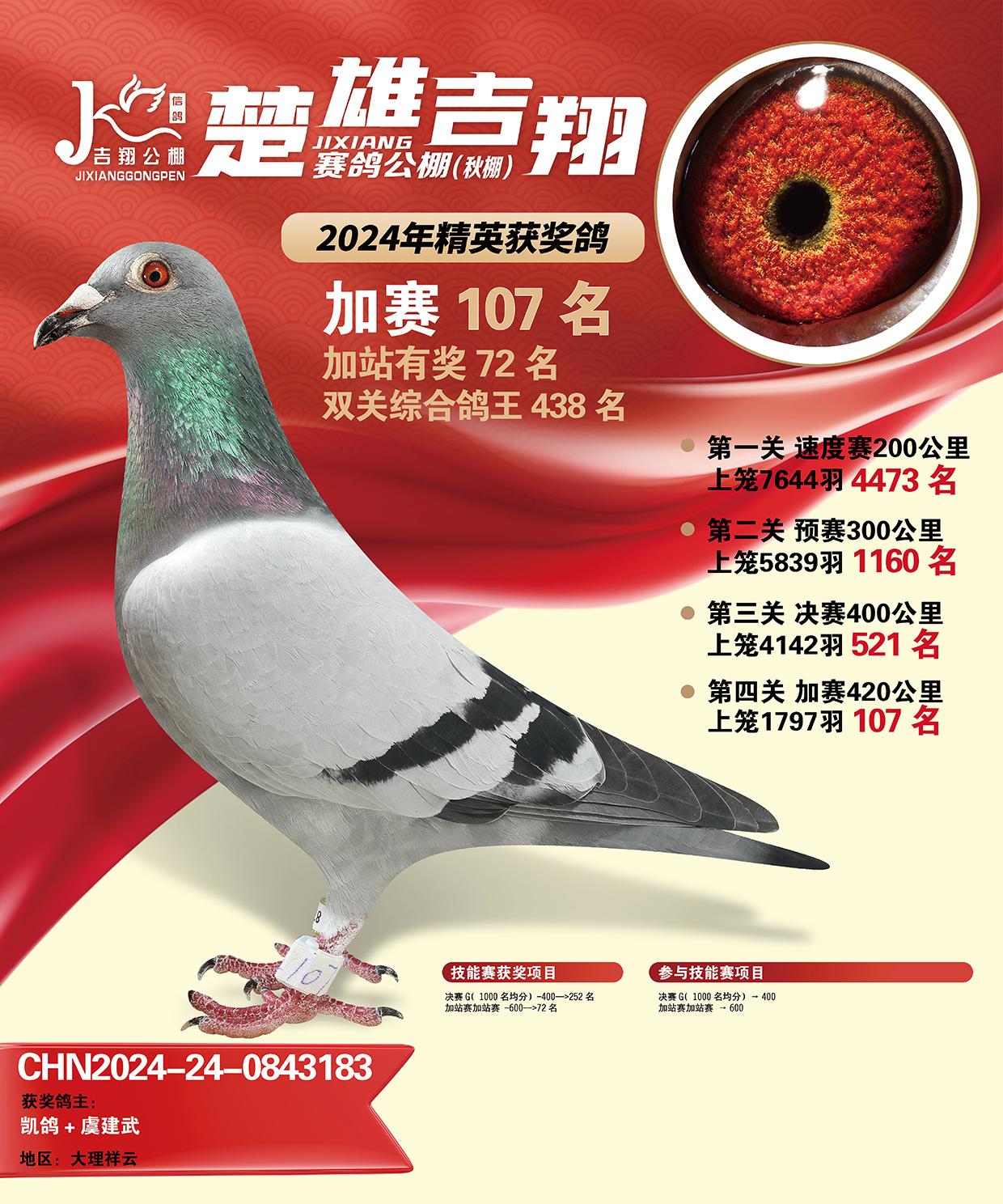 楚雄吉翔养殖有限公司(秋棚)2024年加站赛获奖鸽