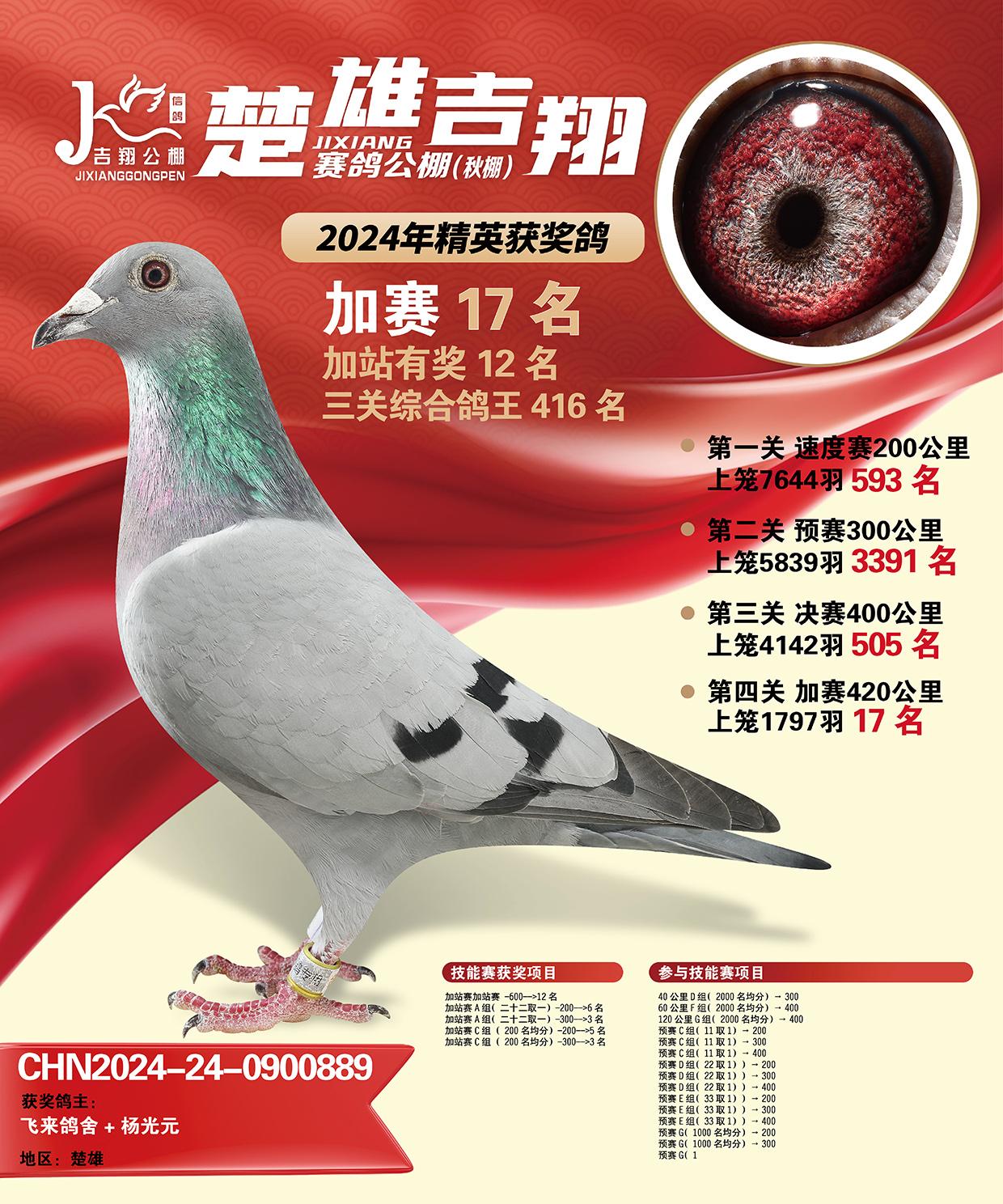 楚雄吉翔养殖有限公司(秋棚)2024年加站赛获奖鸽