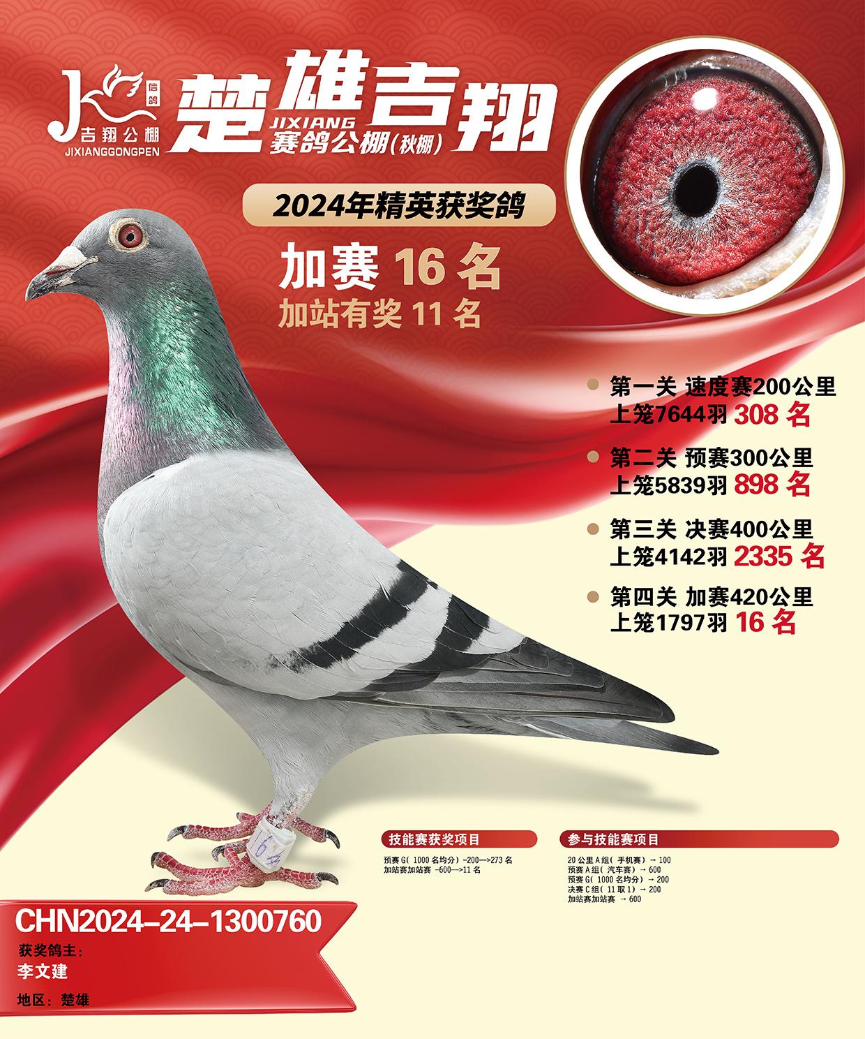 楚雄吉翔养殖有限公司(秋棚)2024年加站赛获奖鸽