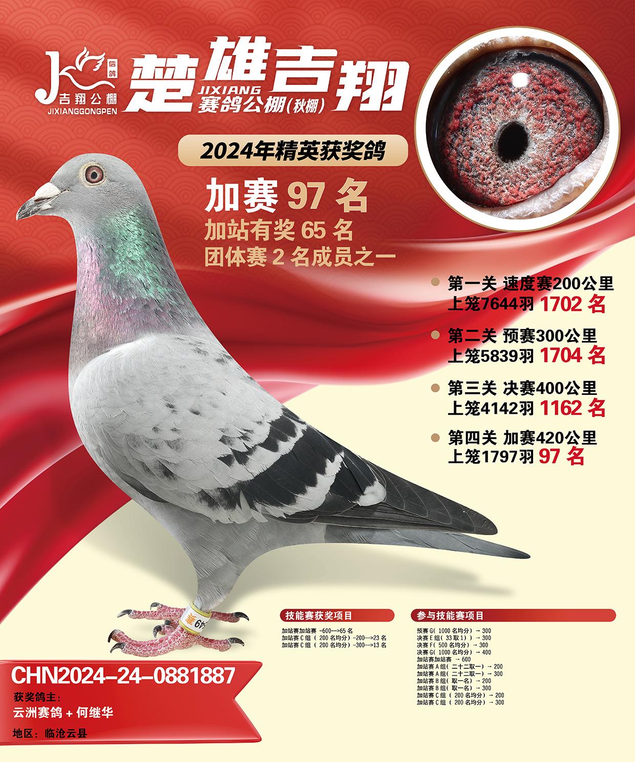楚雄吉翔养殖有限公司(秋棚)2024年加站赛获奖鸽