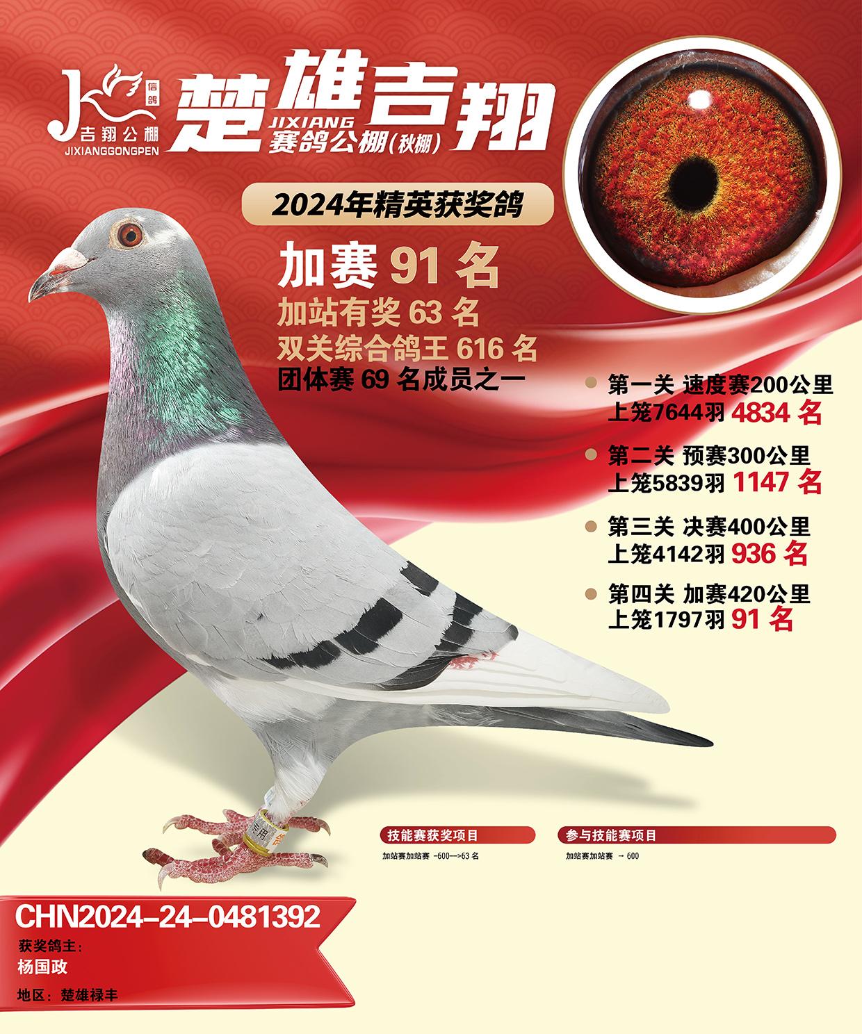 楚雄吉翔养殖有限公司(秋棚)2024年加站赛获奖鸽