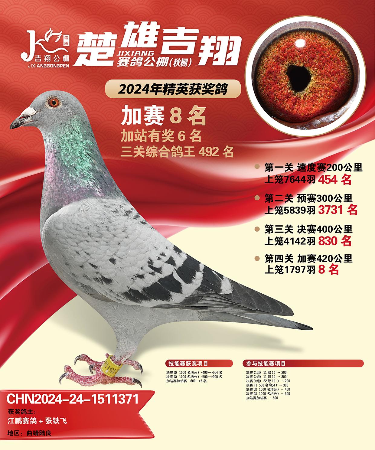 楚雄吉翔养殖有限公司(秋棚)2024年加站赛获奖鸽