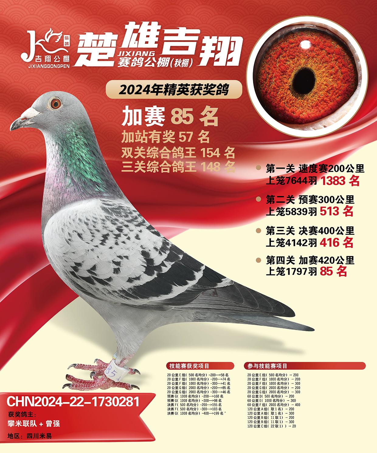 楚雄吉翔养殖有限公司(秋棚)2024年加站赛获奖鸽