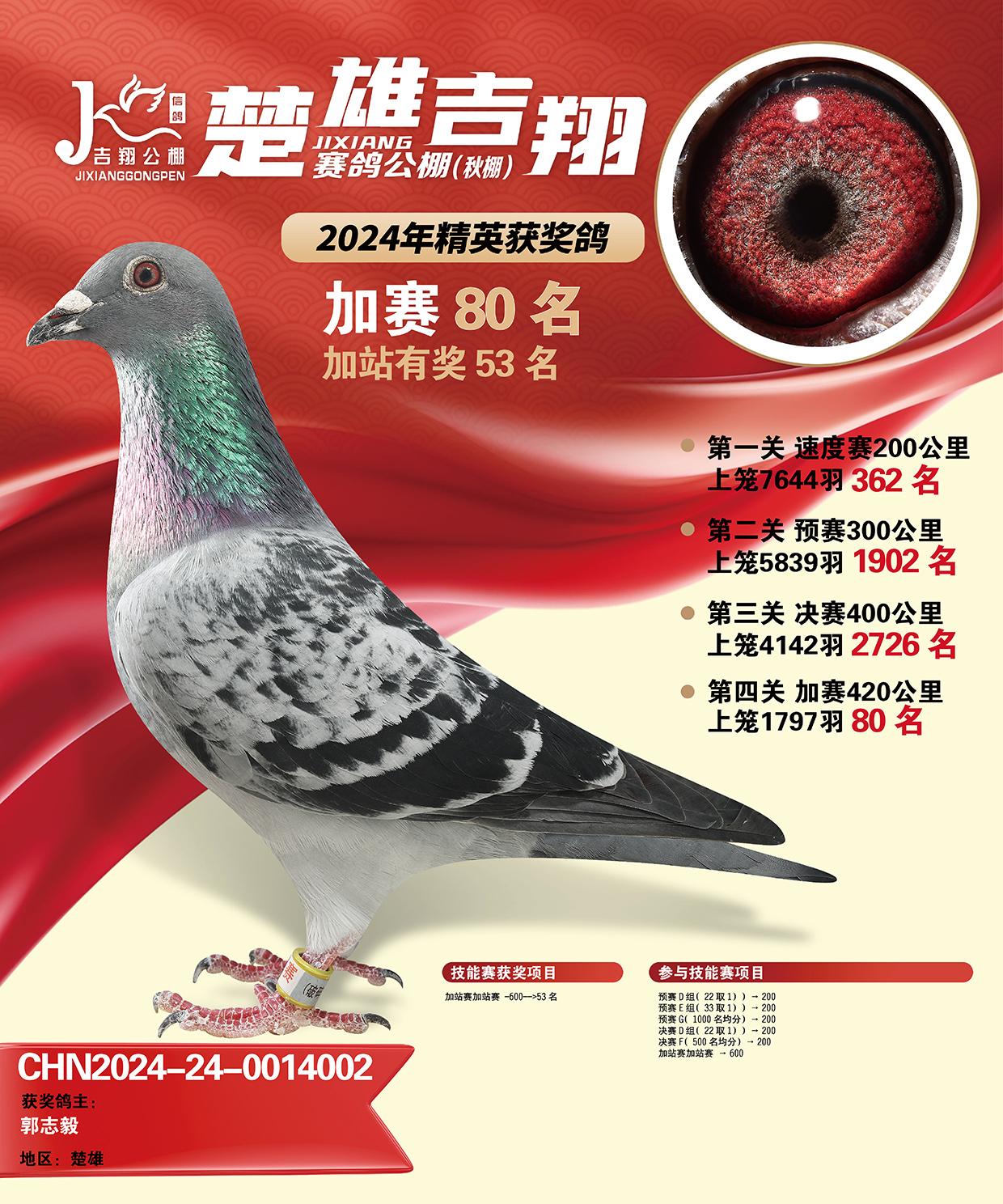 楚雄吉翔养殖有限公司(秋棚)2024年加站赛获奖鸽
