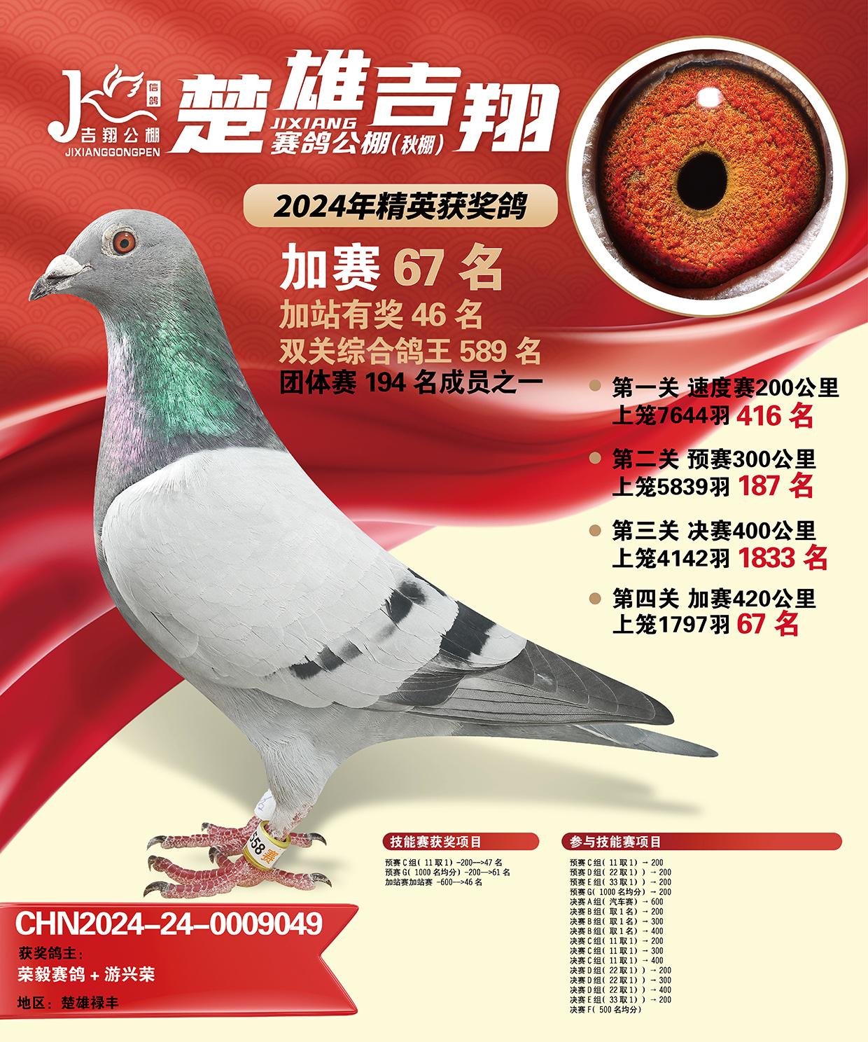 楚雄吉翔养殖有限公司(秋棚)2024年加站赛获奖鸽