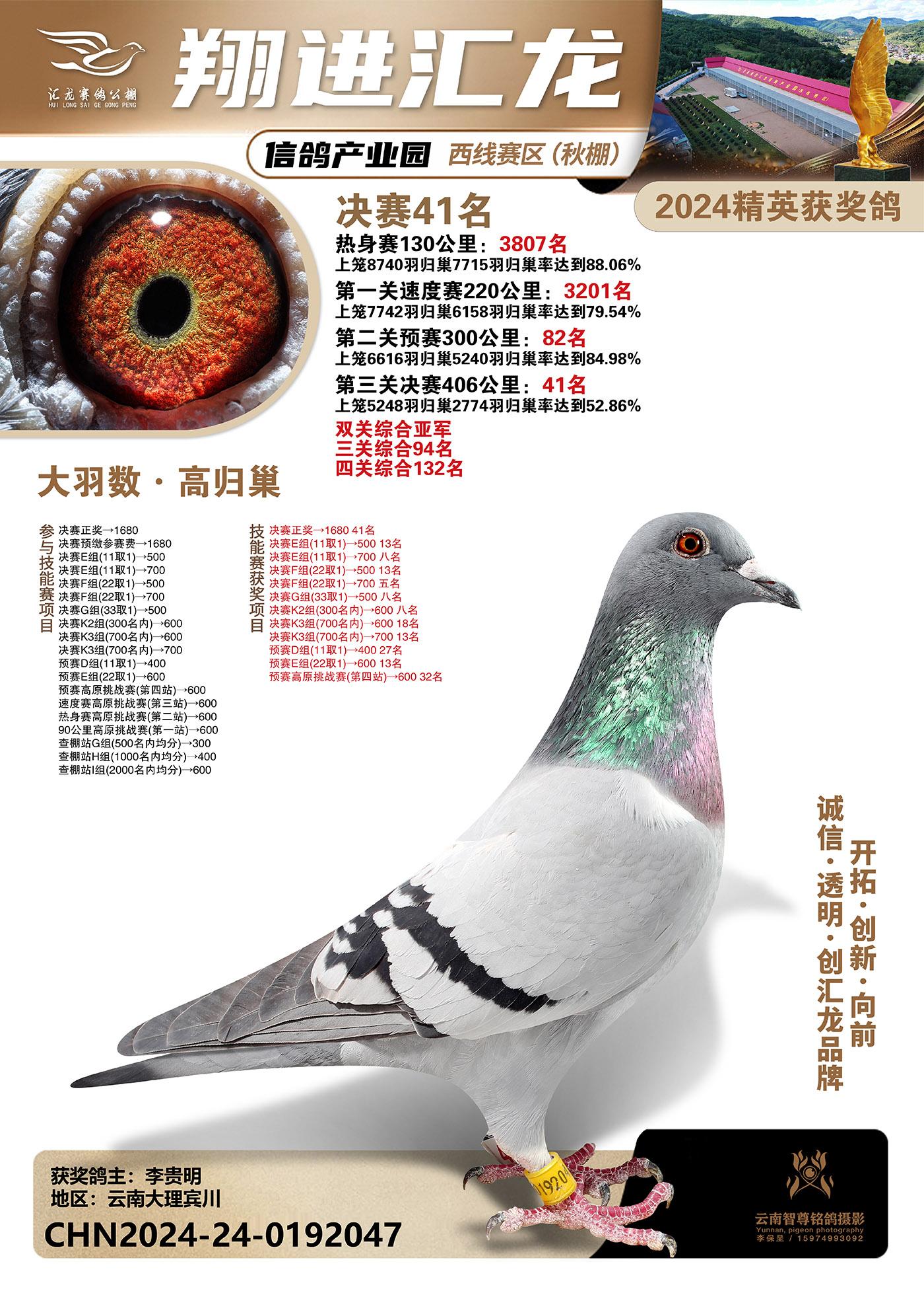 云南楚雄翔进汇龙信鸽产业园西线赛区(秋) 2024精英获奖鸽