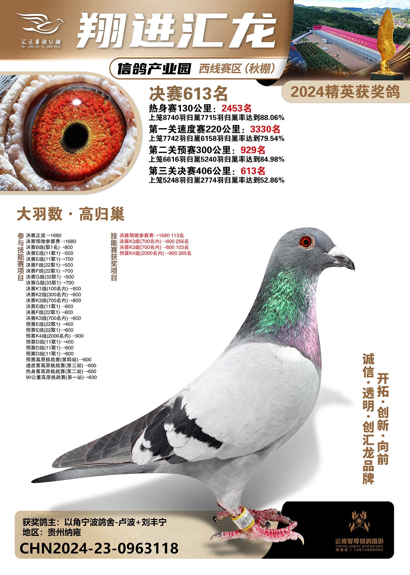 云南楚雄翔进汇龙信鸽产业园西线赛区(秋) 2024精英获奖鸽