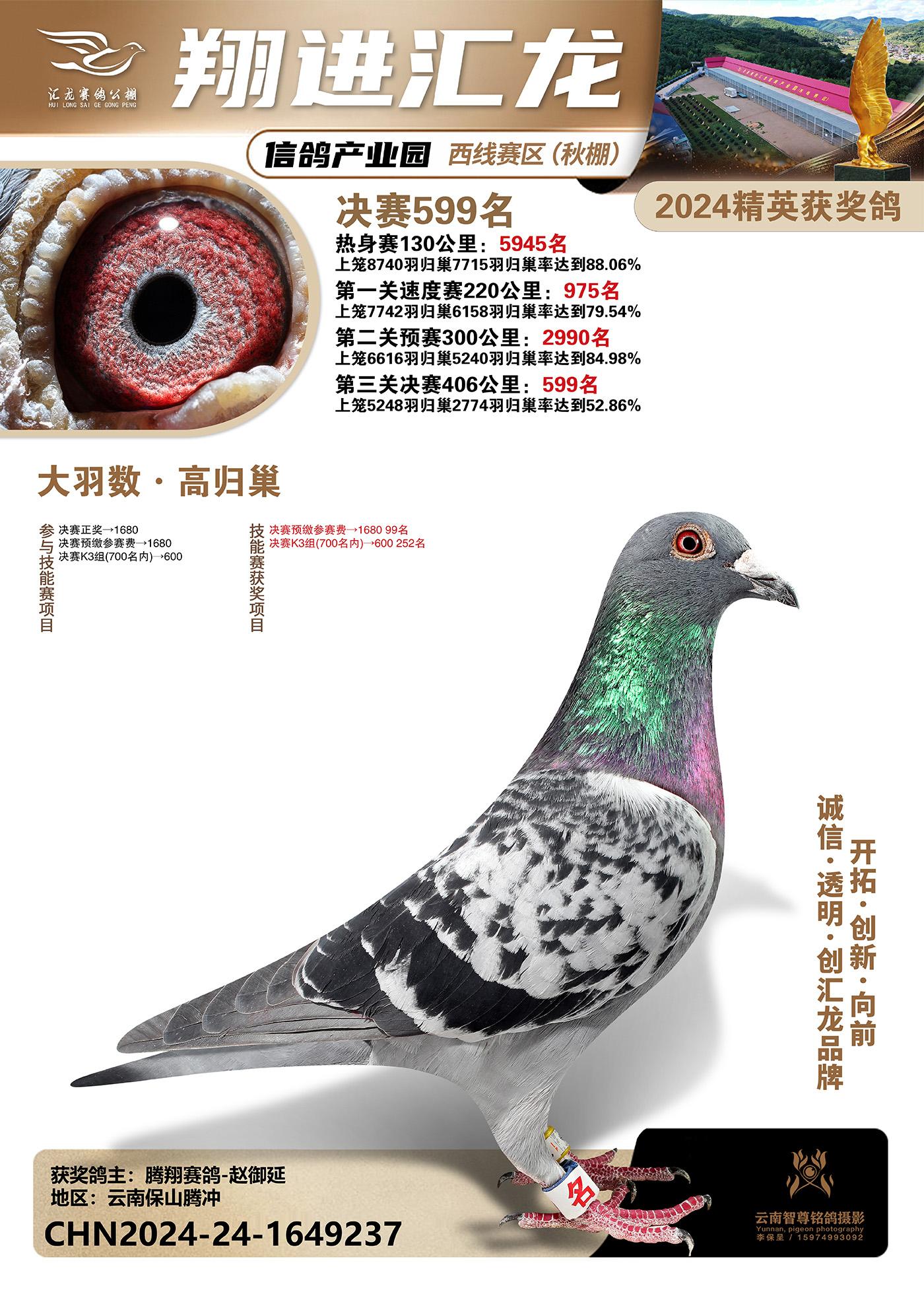 云南楚雄翔进汇龙信鸽产业园西线赛区(秋) 2024精英获奖鸽