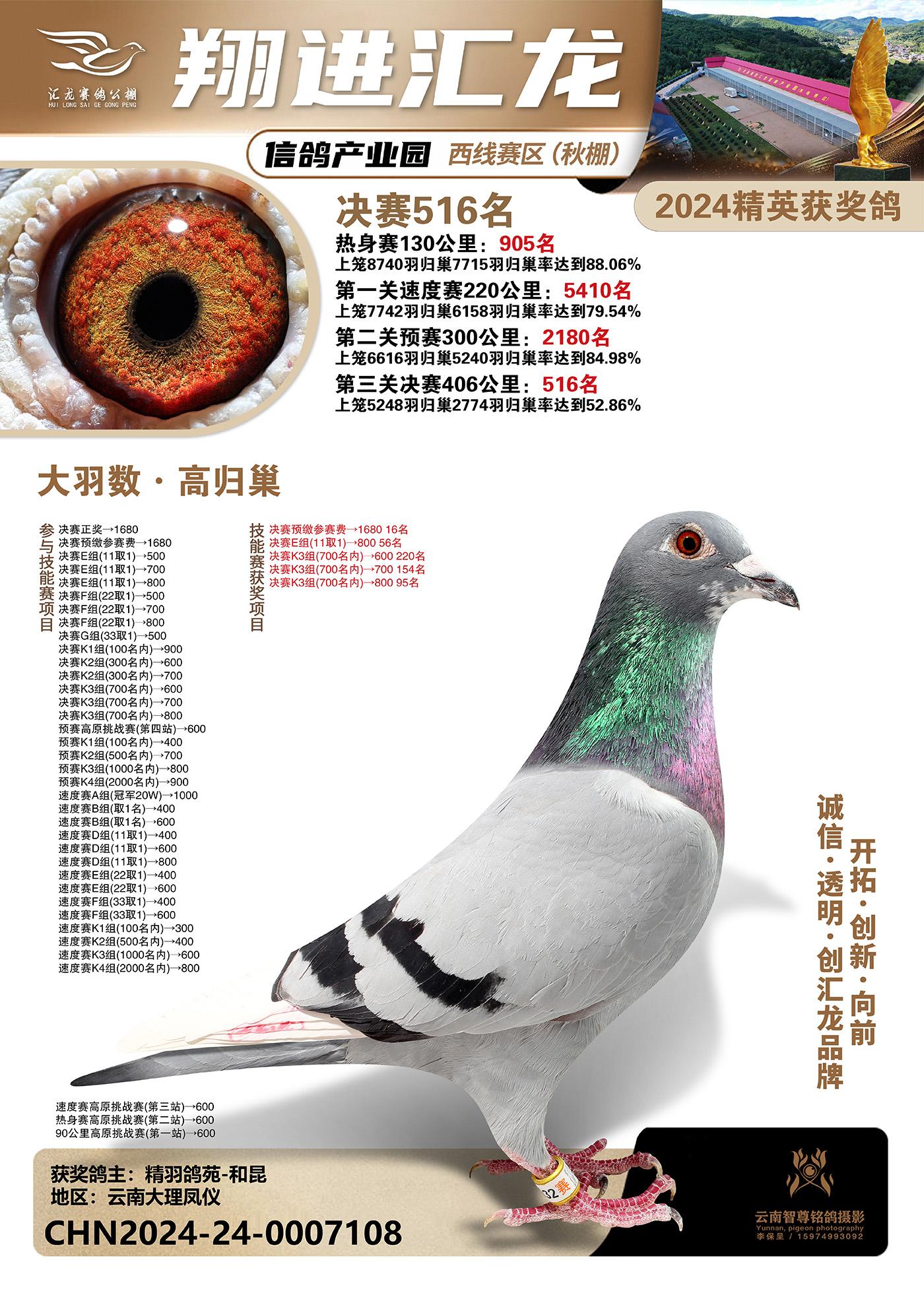 云南楚雄翔进汇龙信鸽产业园西线赛区(秋) 2024精英获奖鸽