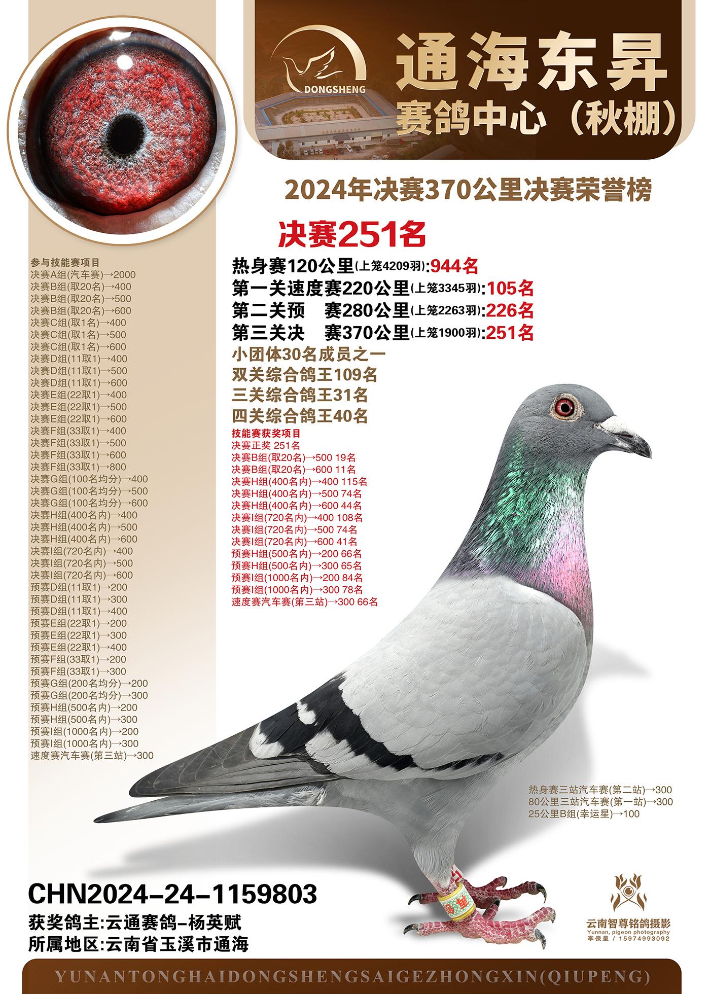 | 鸽主姓名 | 云通赛鸽-杨英赋 |