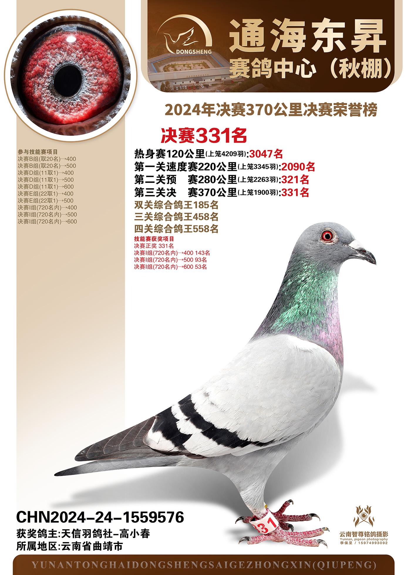 | 鸽主姓名 | 天信羽鸽社-高小春 |