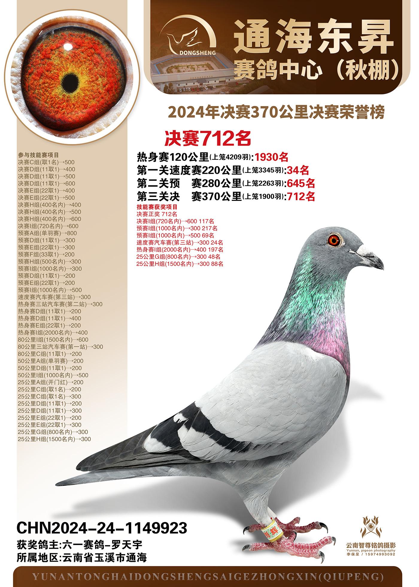 云南通海东昇赛鸽中心-2024年决赛370公里决赛获奖鸽欣赏