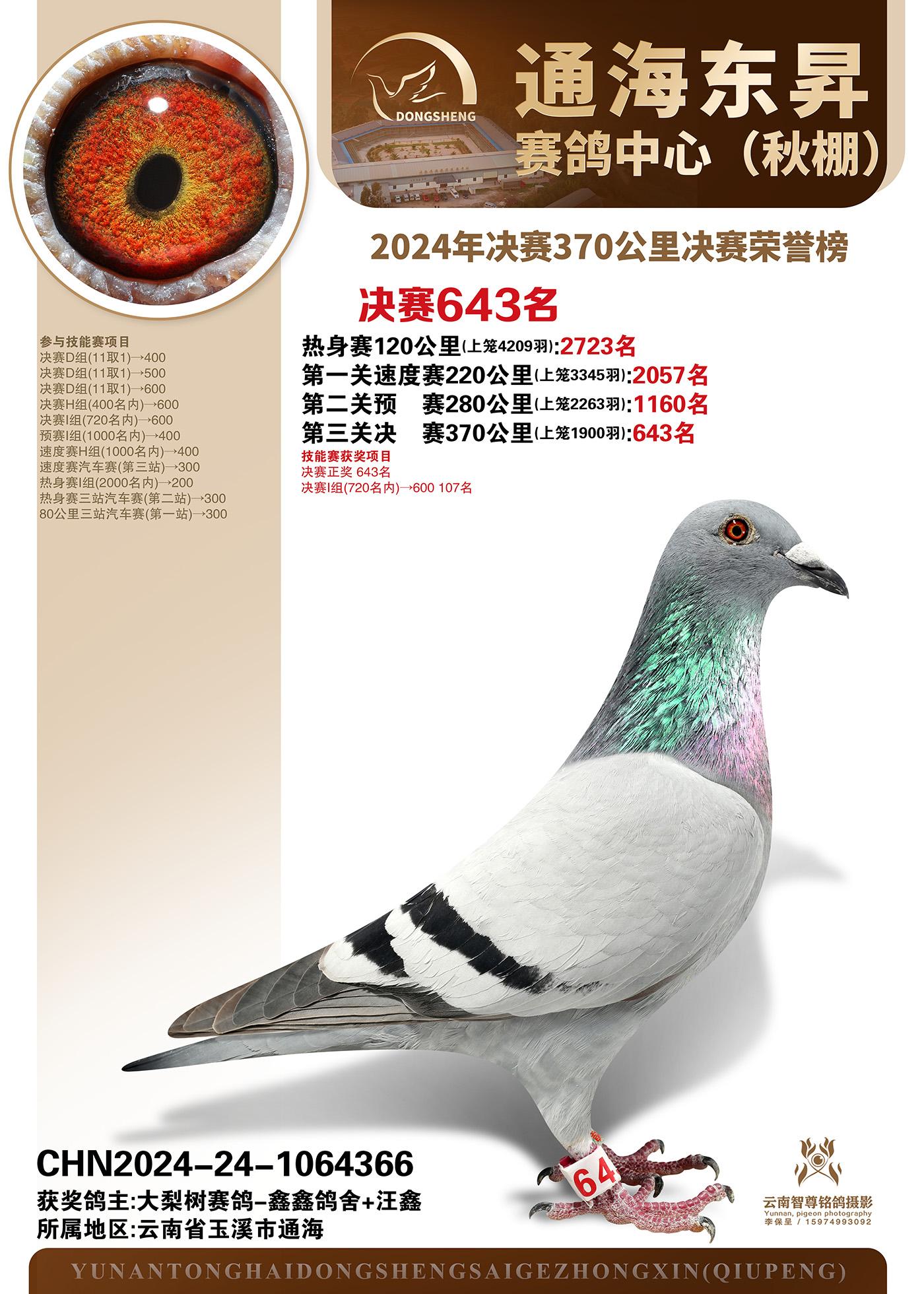 云南通海东昇赛鸽中心-2024年决赛370公里决赛获奖鸽欣赏
