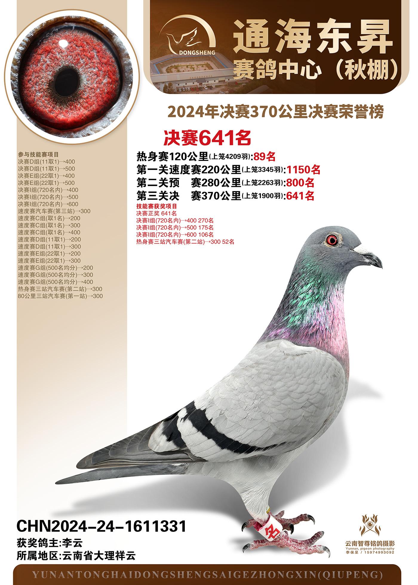 云南通海东昇赛鸽中心-2024年决赛370公里决赛获奖鸽欣赏