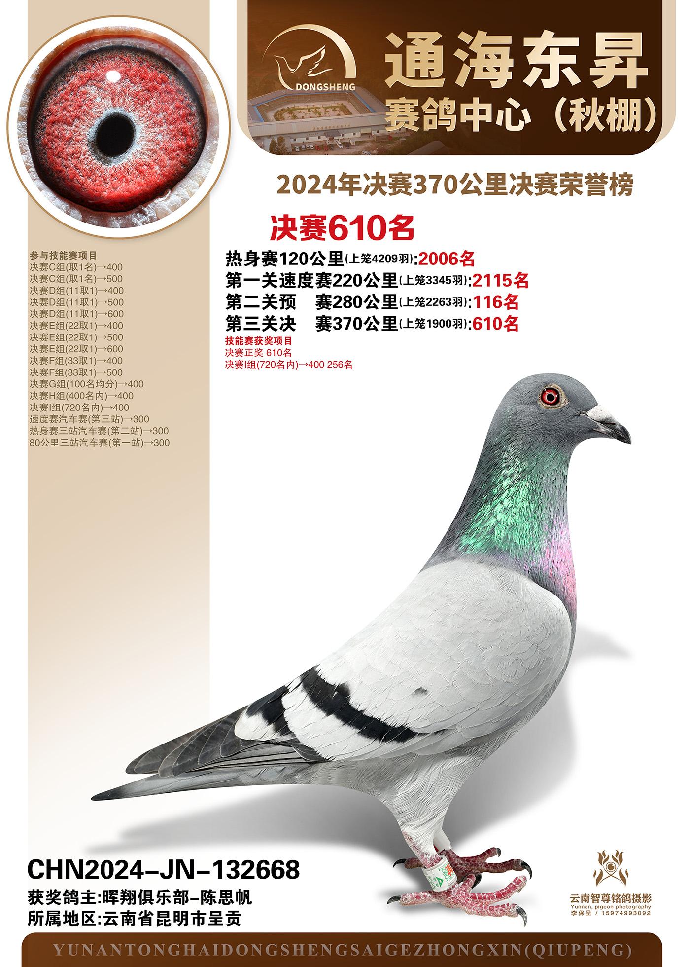 云南通海东昇赛鸽中心-2024年决赛370公里决赛获奖鸽欣赏