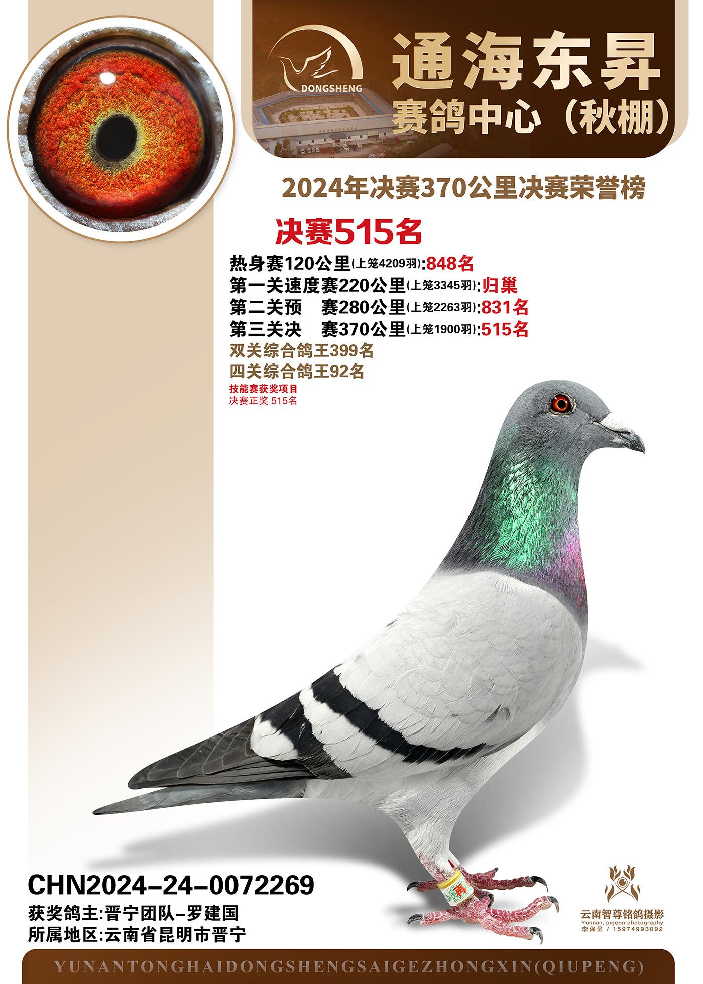 云南通海东昇赛鸽中心-2024年决赛370公里决赛获奖鸽欣赏