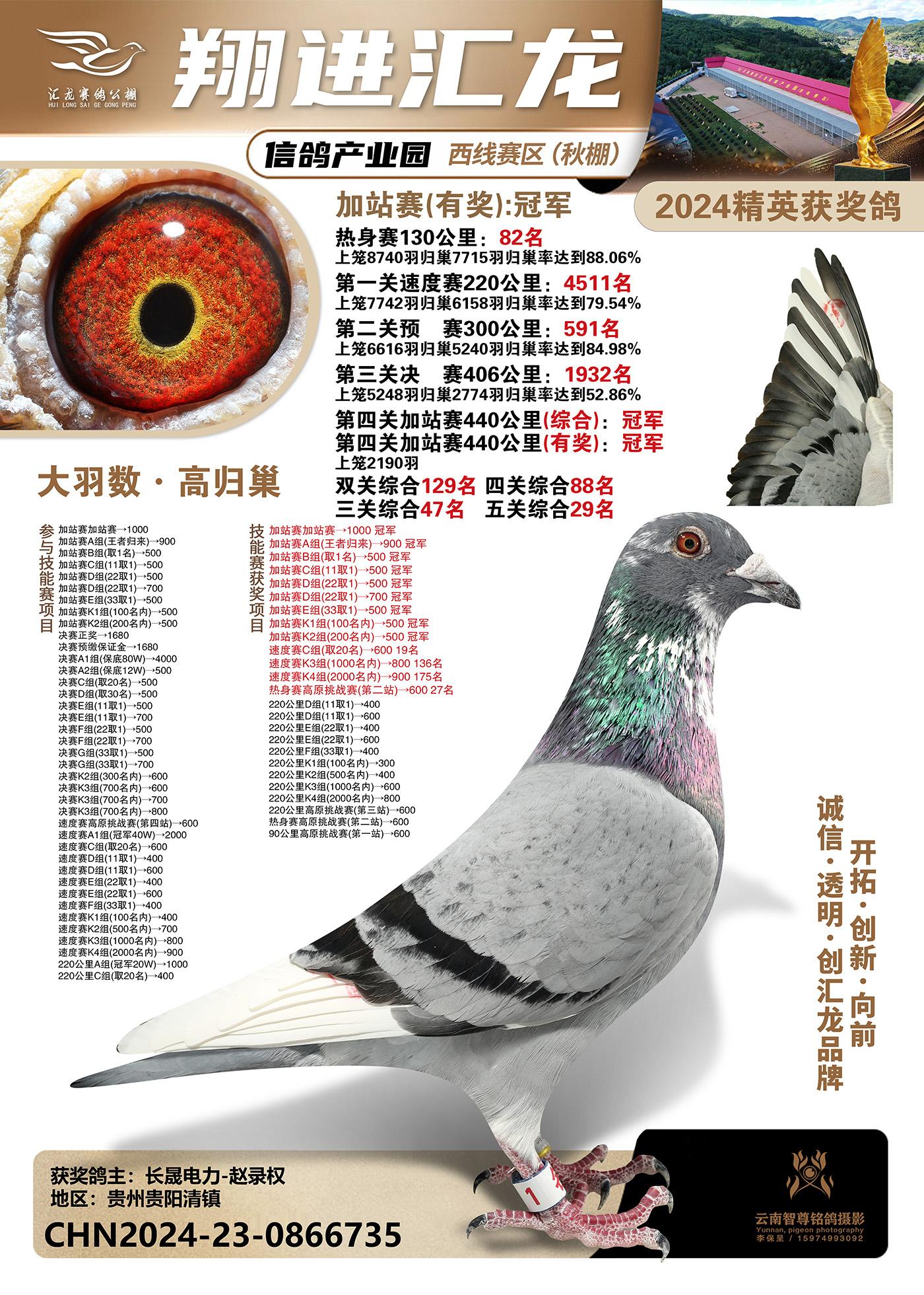云南楚雄翔进汇龙西线赛区2024精英获奖鸽