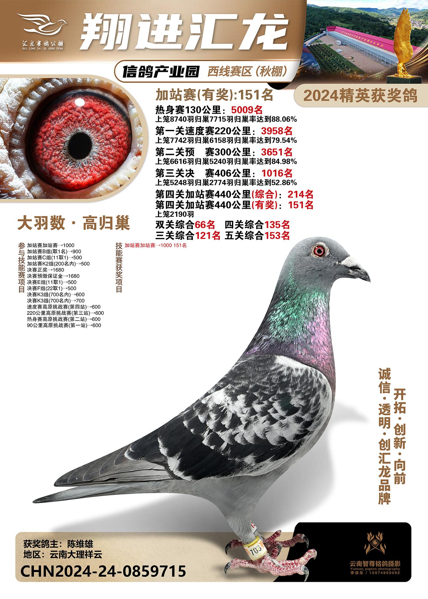 云南楚雄翔进汇龙西线赛区2024精英获奖鸽