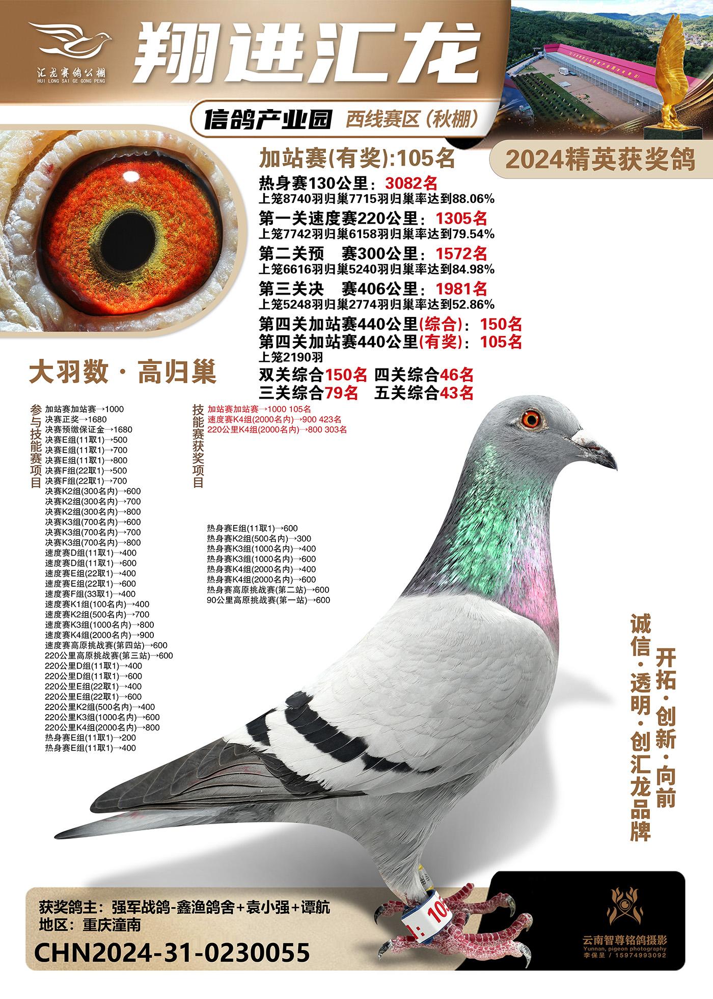 云南楚雄翔进汇龙西线赛区2024精英获奖鸽