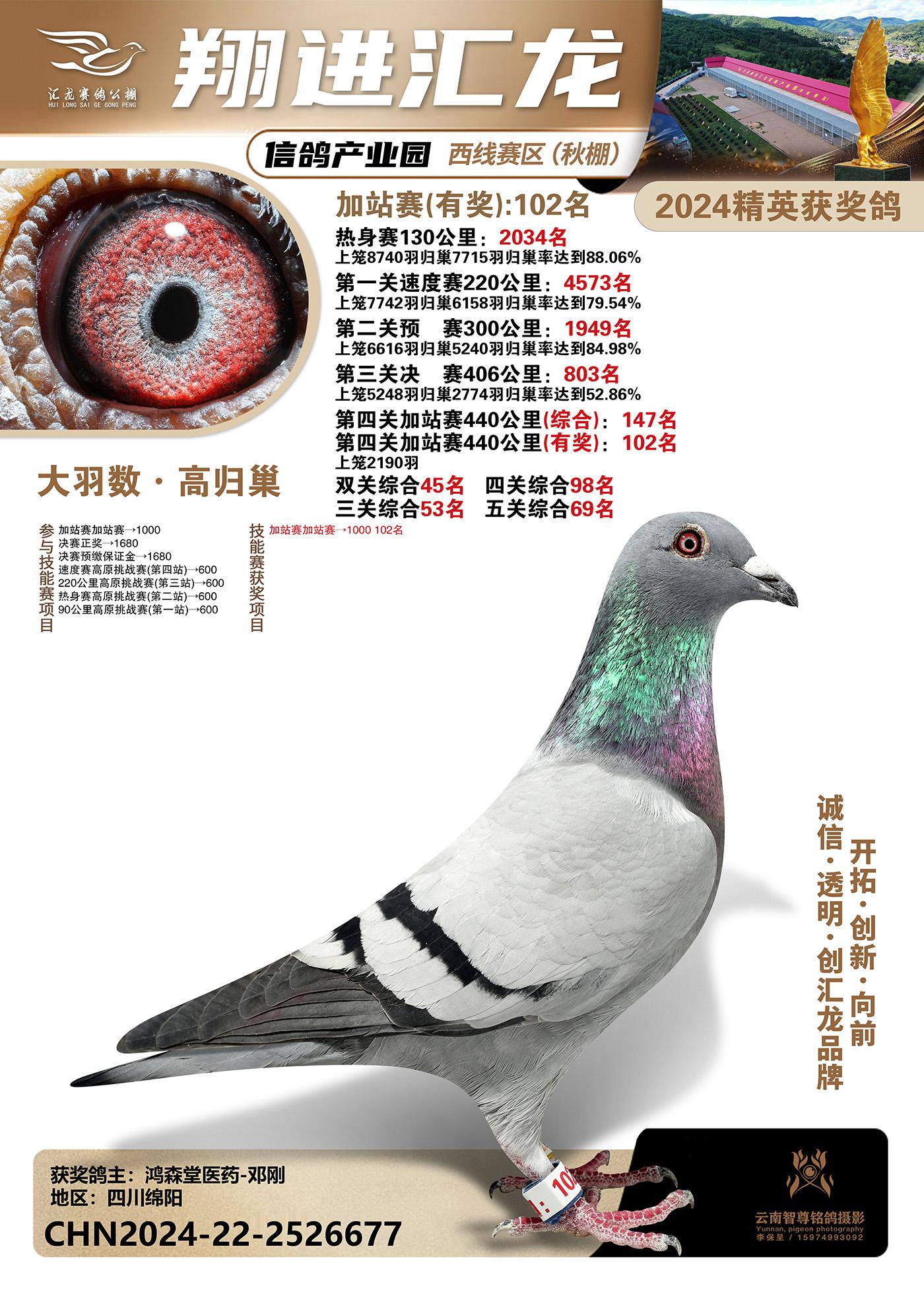 云南楚雄翔进汇龙西线赛区2024精英获奖鸽