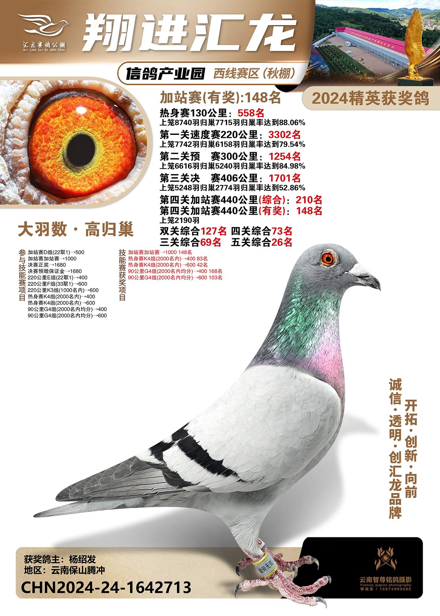 云南楚雄翔进汇龙西线赛区2024精英获奖鸽