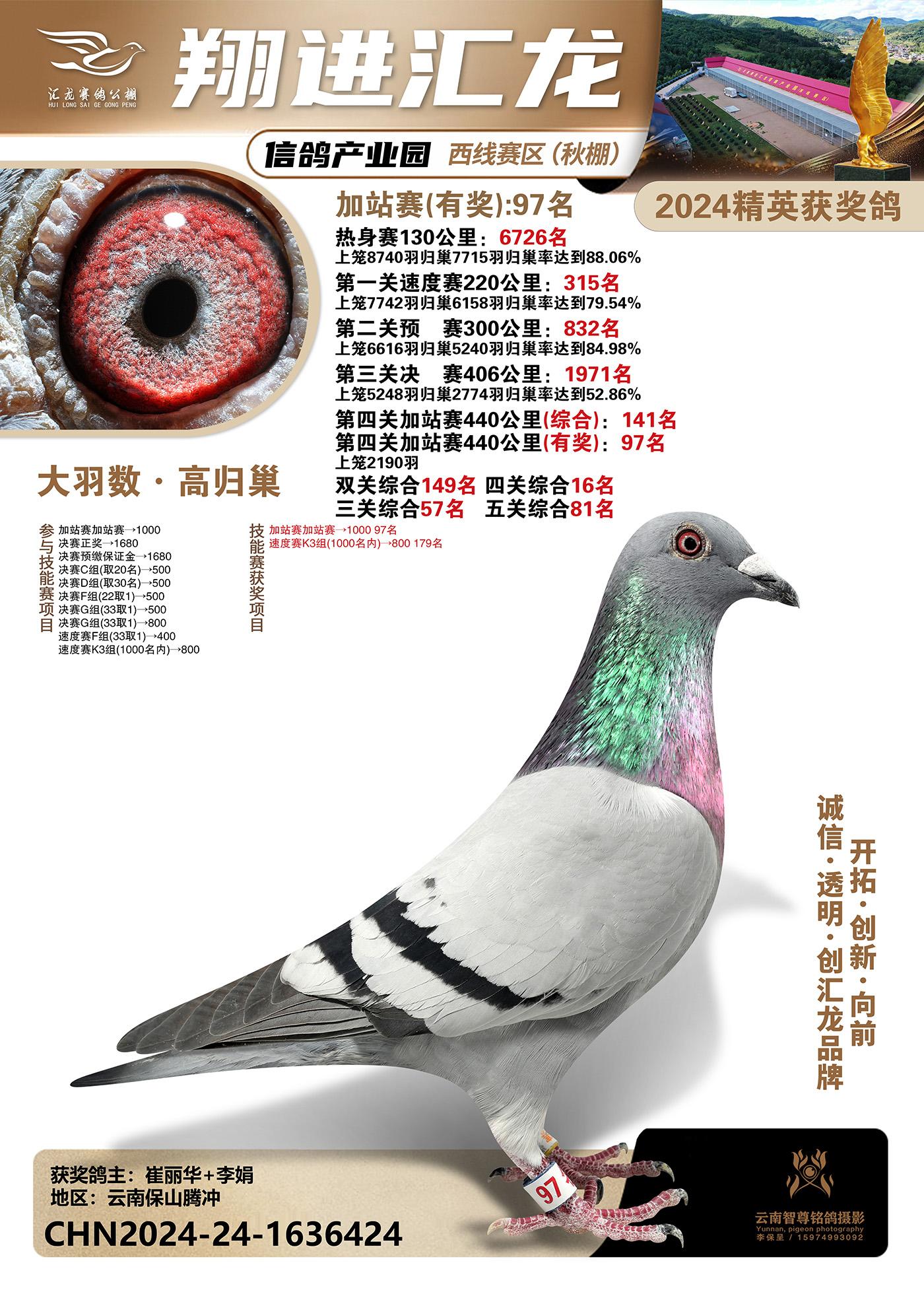 云南楚雄翔进汇龙西线赛区2024精英获奖鸽