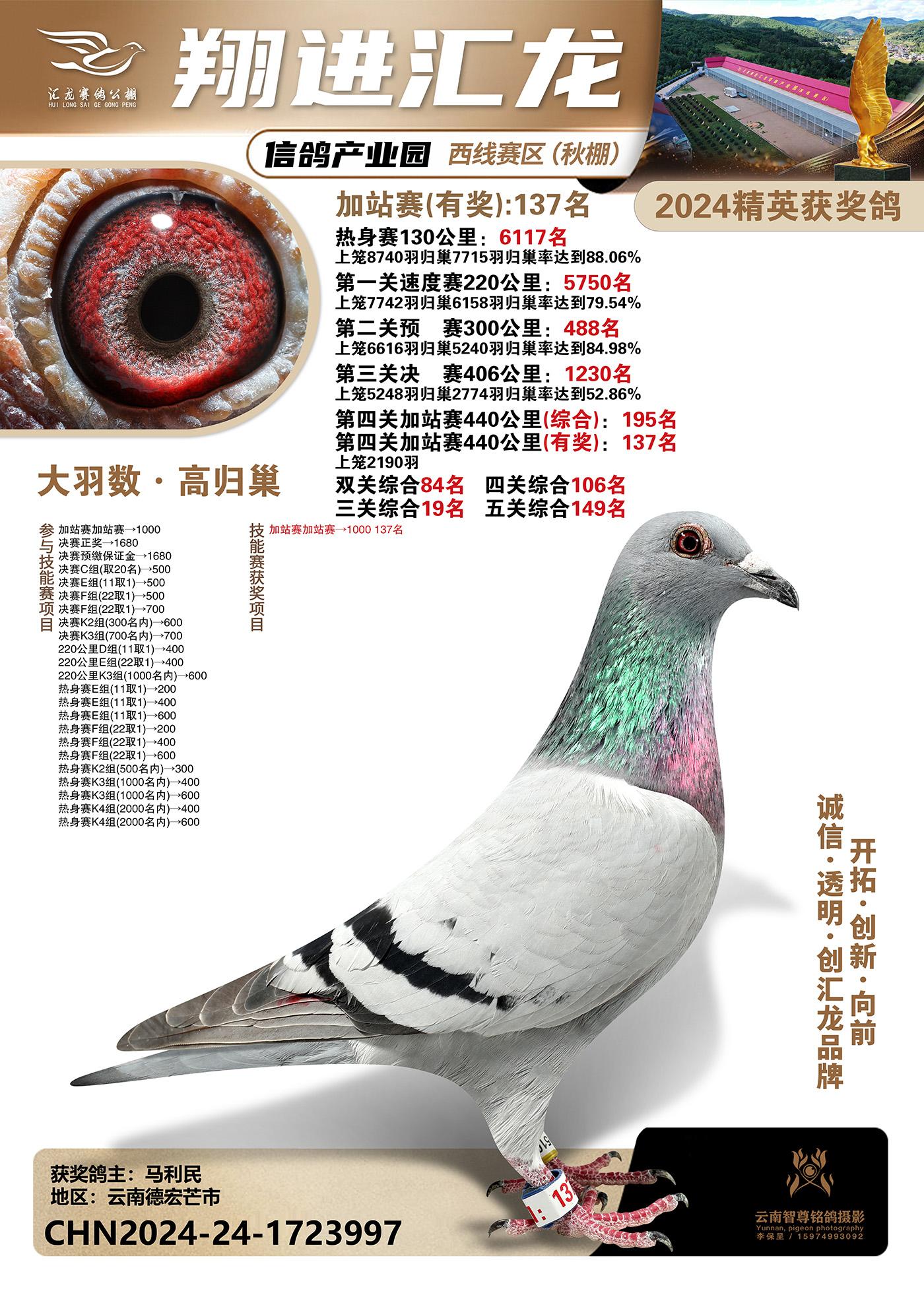 云南楚雄翔进汇龙西线赛区2024精英获奖鸽