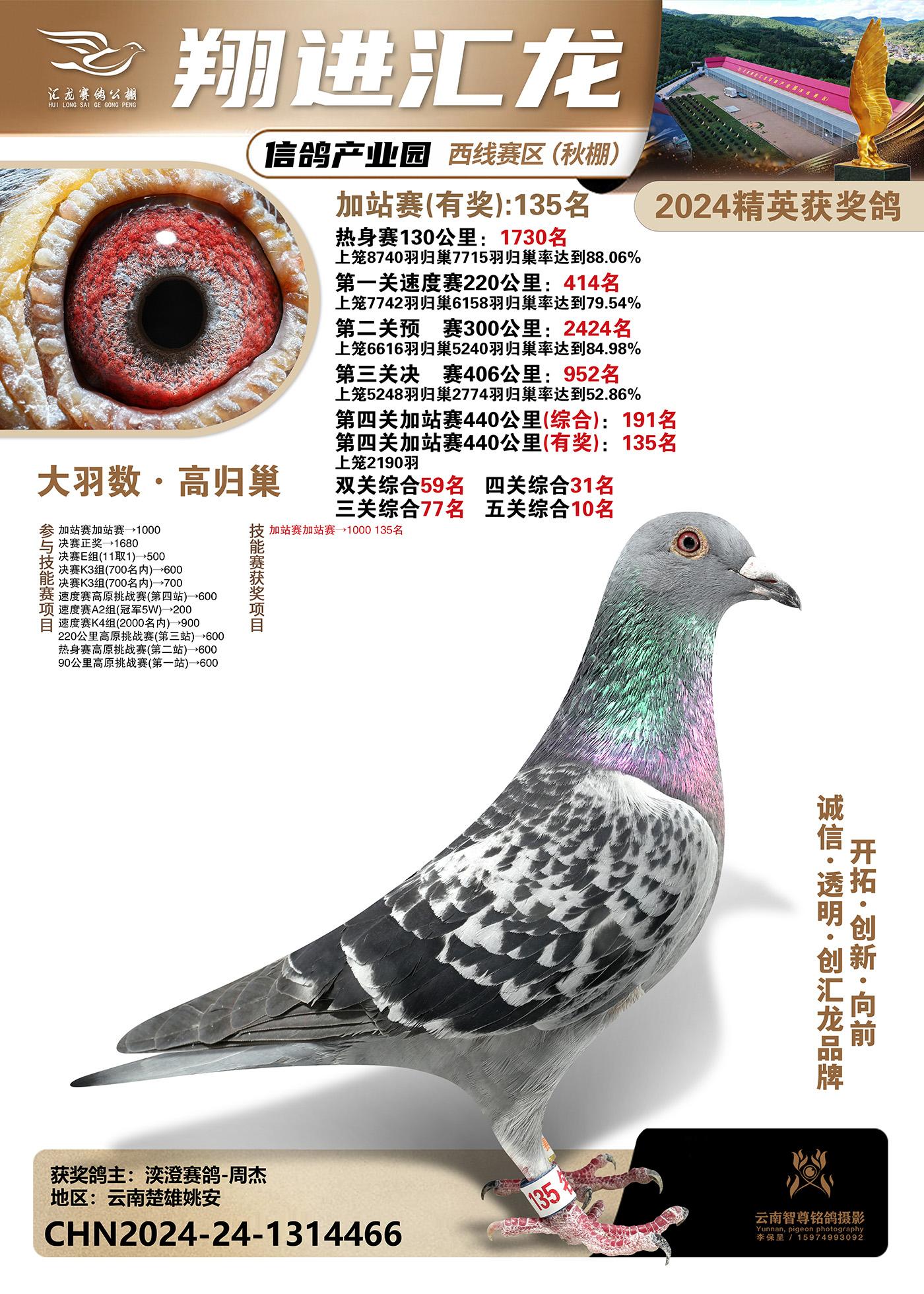 云南楚雄翔进汇龙西线赛区2024精英获奖鸽