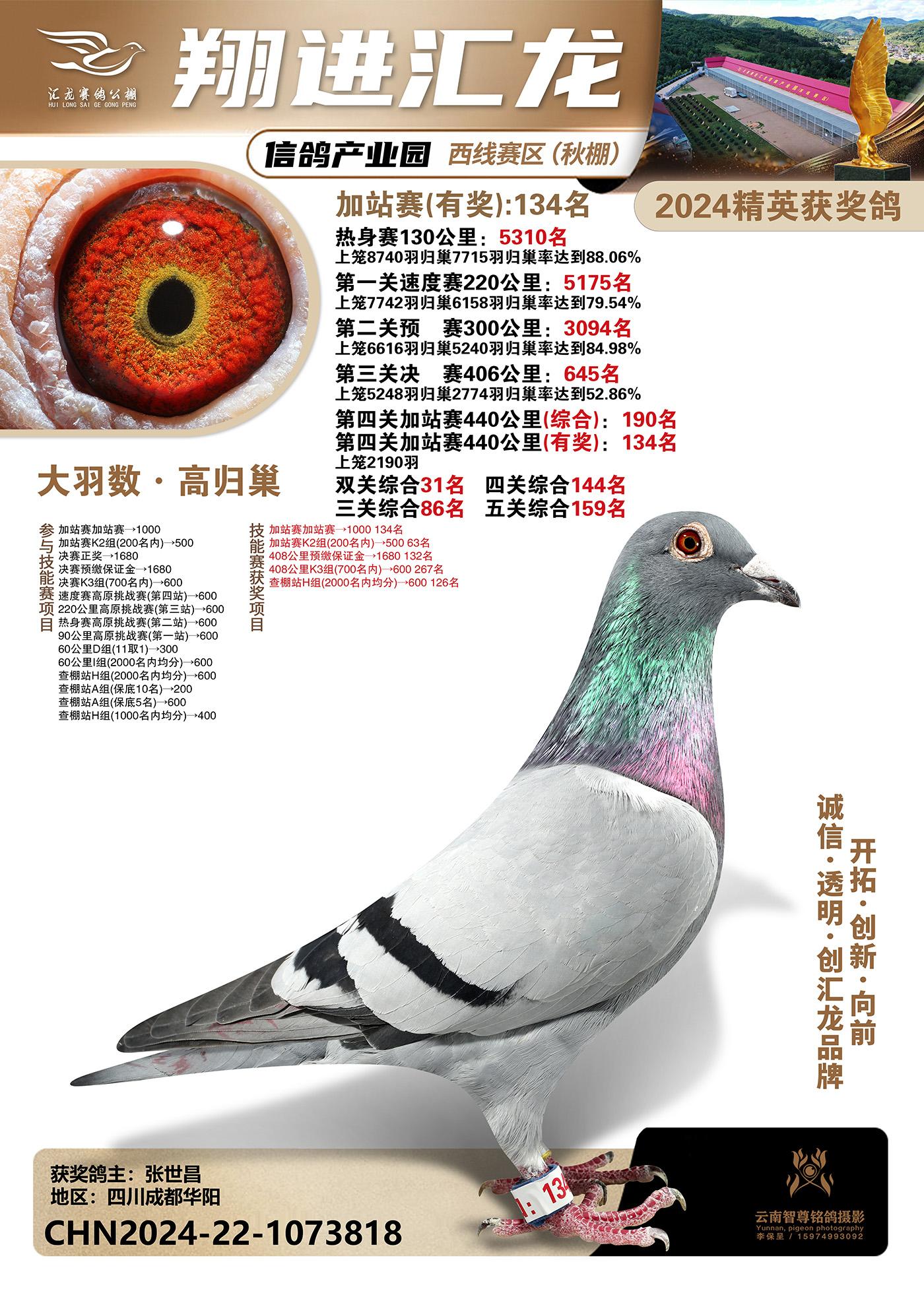 云南楚雄翔进汇龙西线赛区2024精英获奖鸽