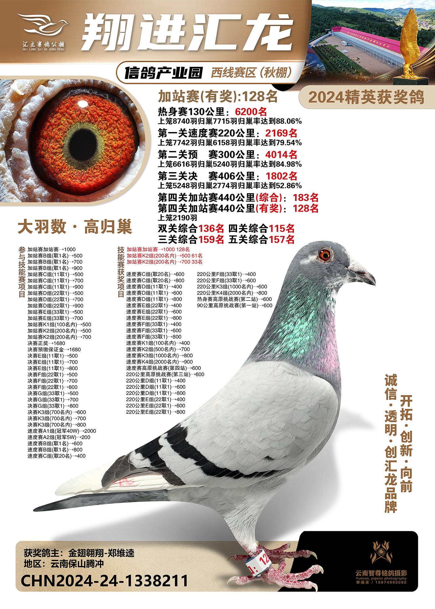 云南楚雄翔进汇龙西线赛区2024精英获奖鸽