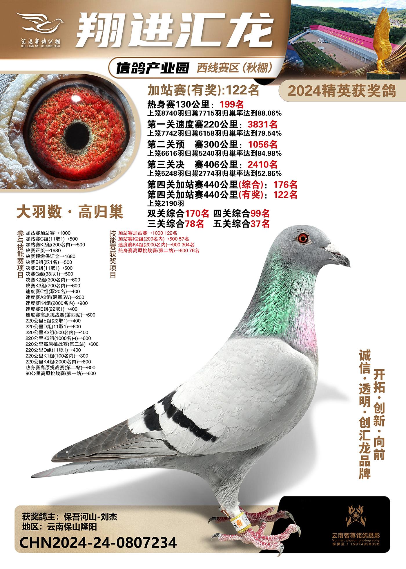 云南楚雄翔进汇龙西线赛区2024精英获奖鸽