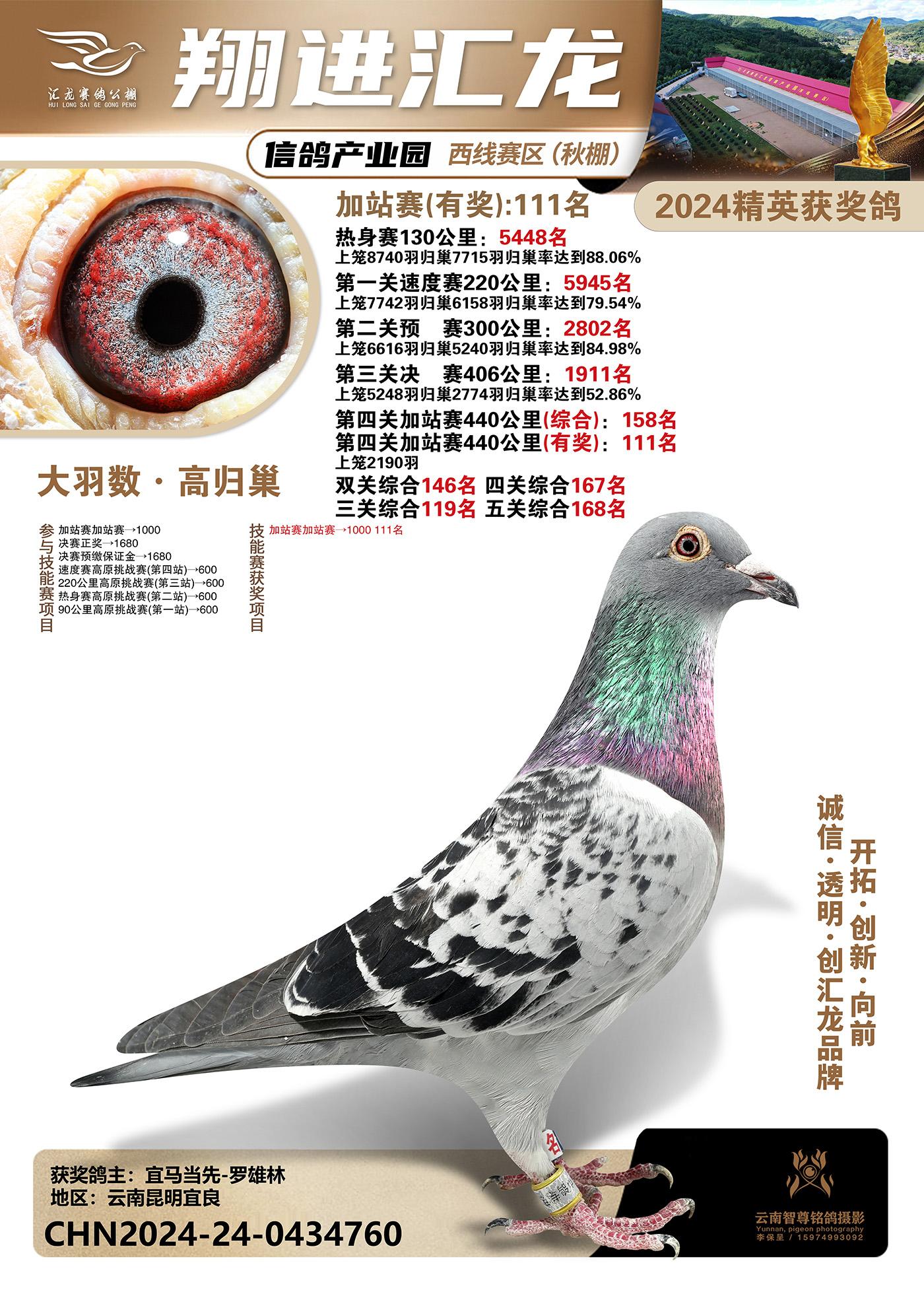 云南楚雄翔进汇龙西线赛区2024精英获奖鸽
