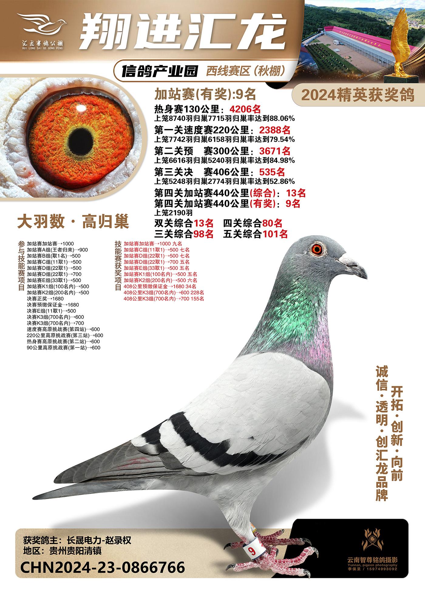 云南楚雄翔进汇龙西线赛区2024精英获奖鸽
