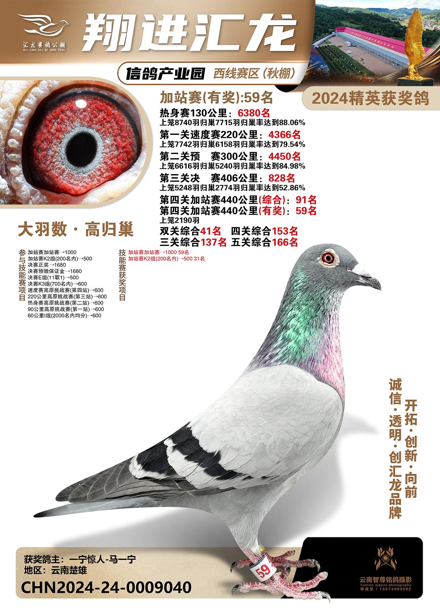 云南楚雄翔进汇龙西线赛区2024精英获奖鸽