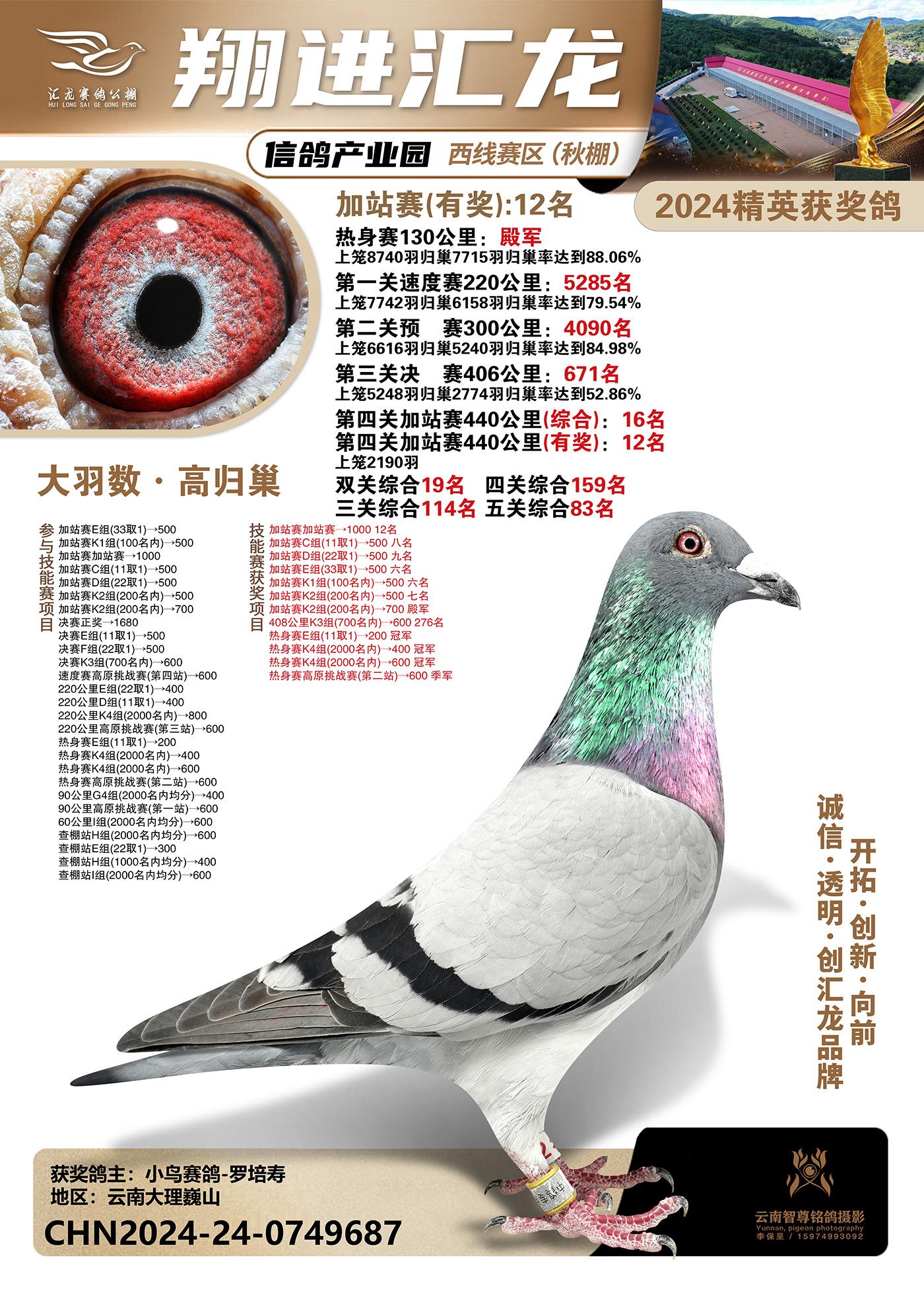 云南楚雄翔进汇龙西线赛区2024精英获奖鸽