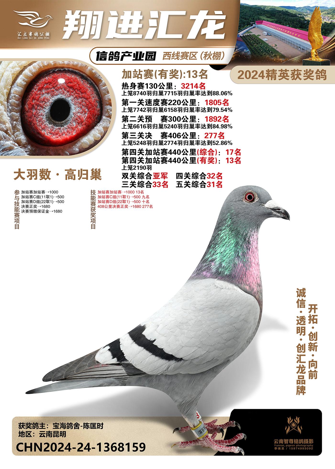 云南楚雄翔进汇龙西线赛区2024精英获奖鸽