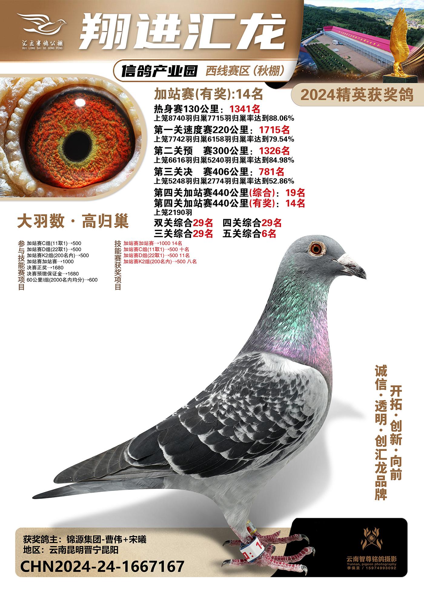 云南楚雄翔进汇龙西线赛区2024精英获奖鸽