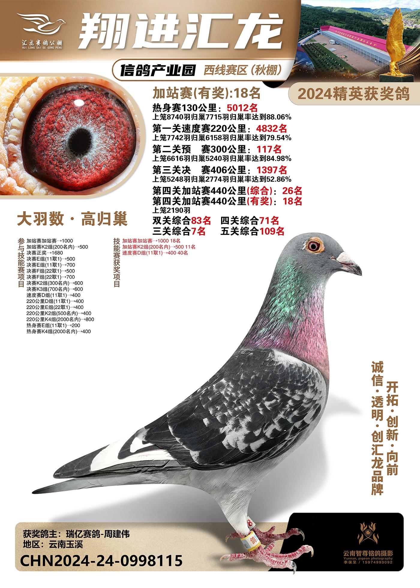 云南楚雄翔进汇龙西线赛区2024精英获奖鸽