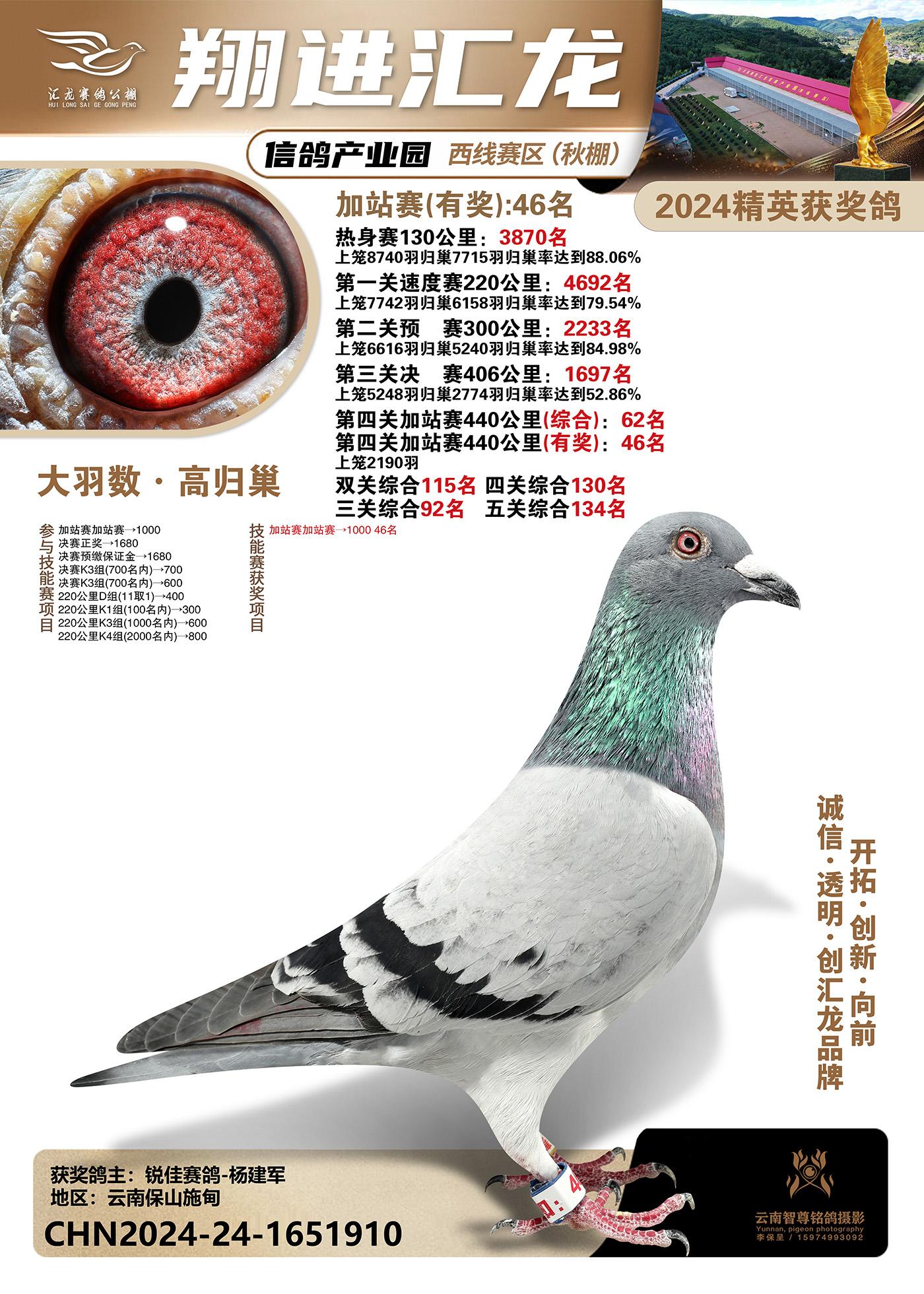云南楚雄翔进汇龙西线赛区2024精英获奖鸽