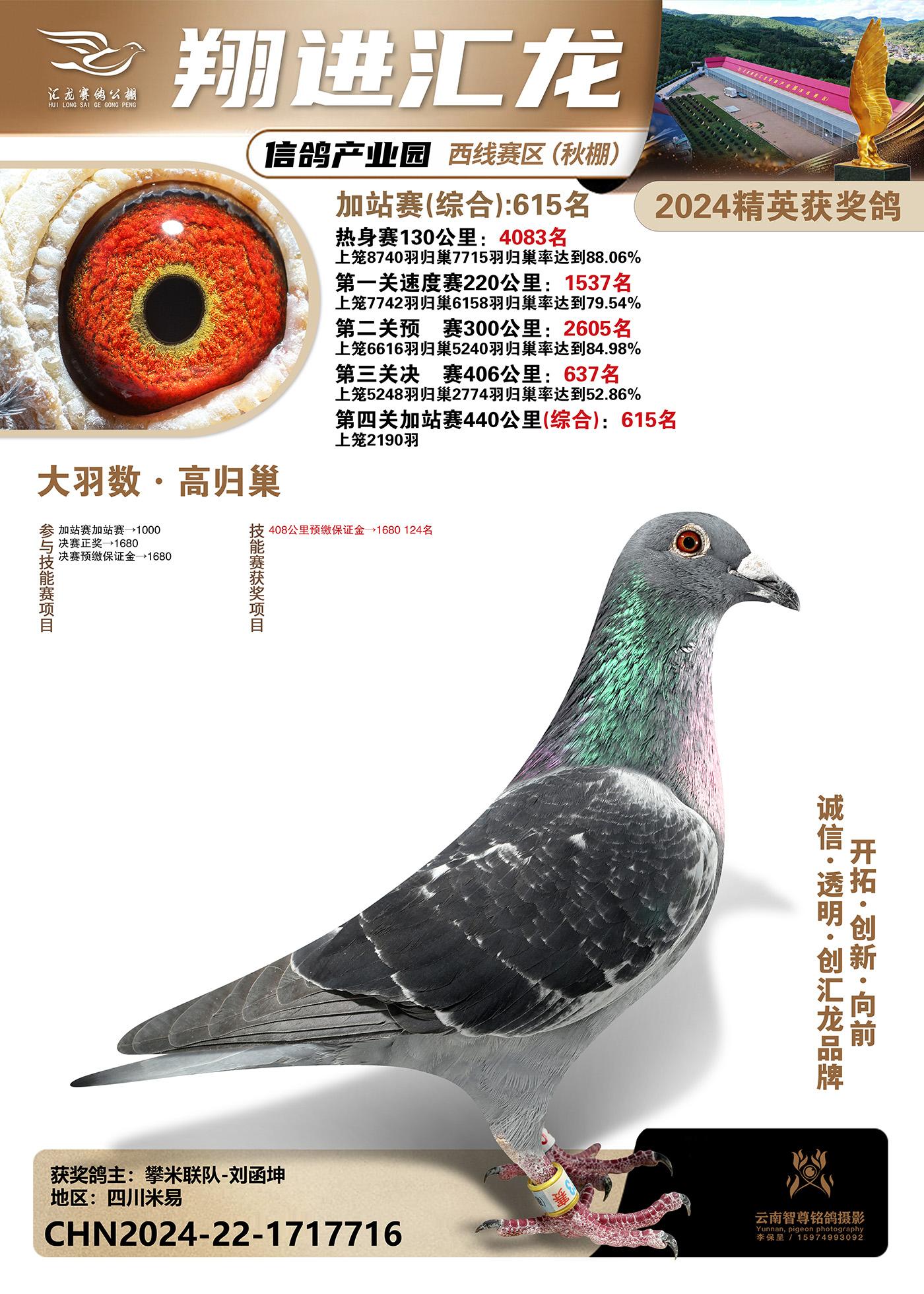 云南楚雄翔进汇龙西线赛区2024精英获奖鸽