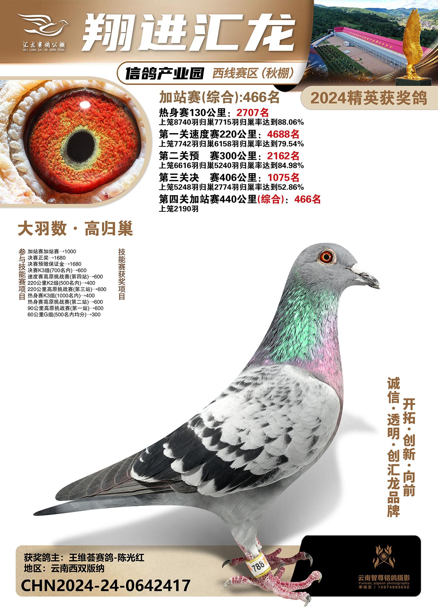 云南楚雄翔进汇龙西线赛区2024精英获奖鸽
