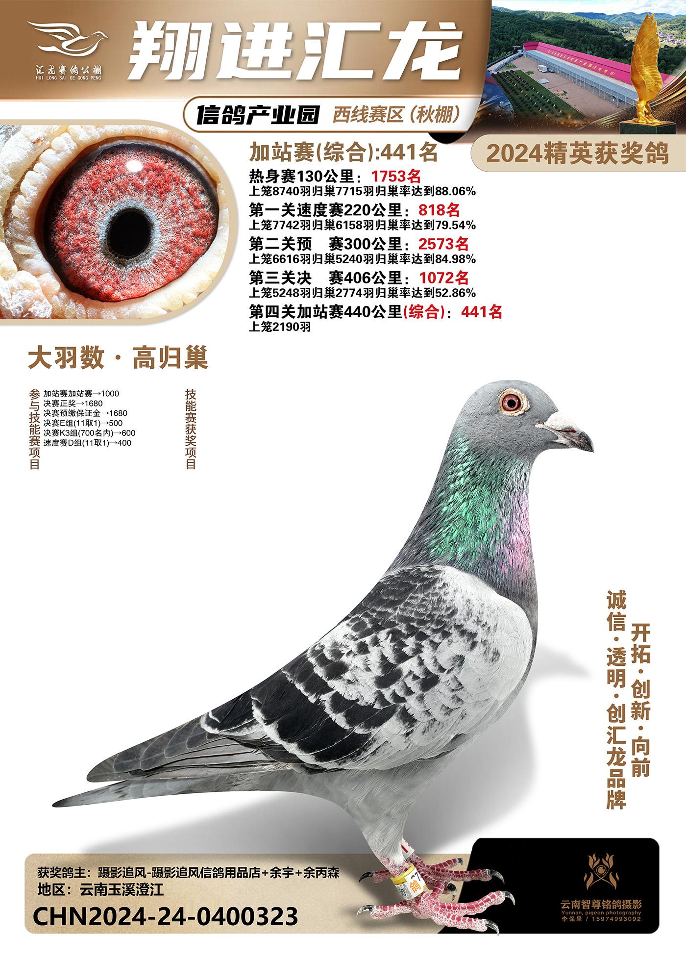 云南楚雄翔进汇龙西线赛区2024精英获奖鸽