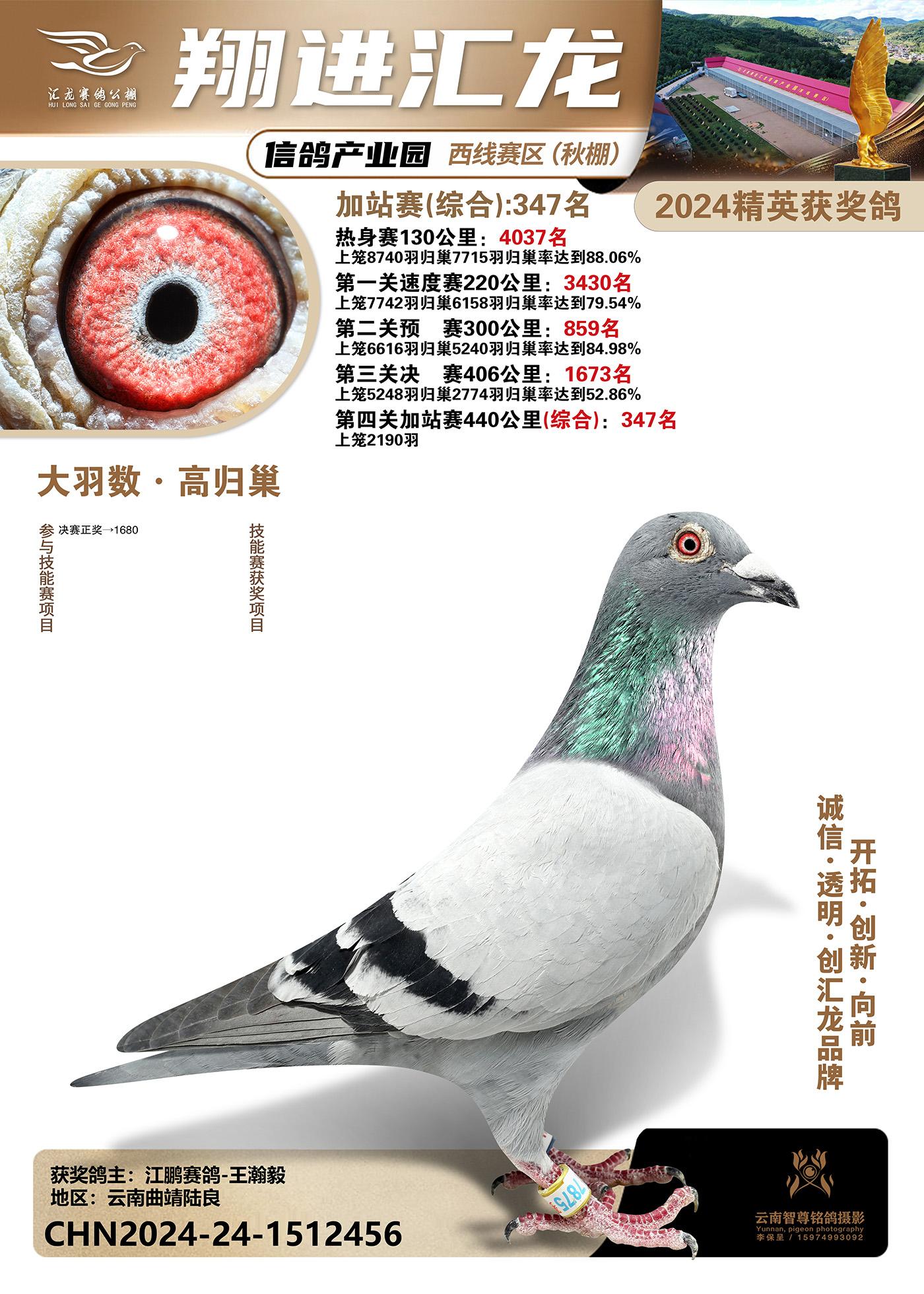 云南楚雄翔进汇龙西线赛区2024精英获奖鸽