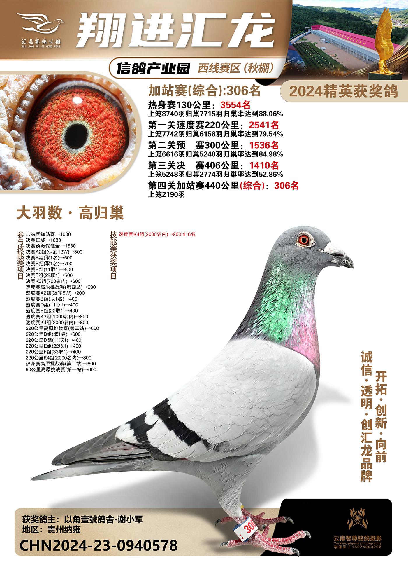 云南楚雄翔进汇龙西线赛区2024精英获奖鸽