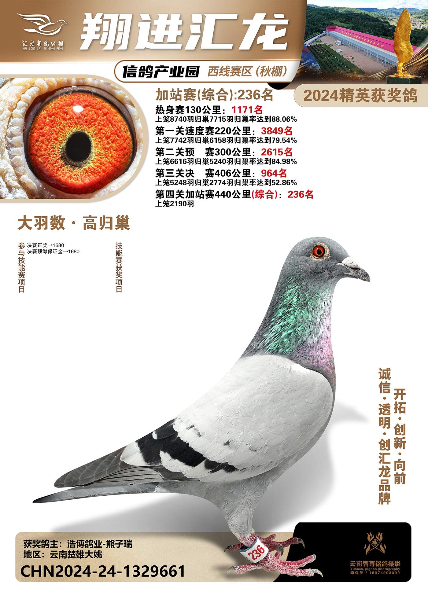 云南楚雄翔进汇龙西线赛区2024精英获奖鸽