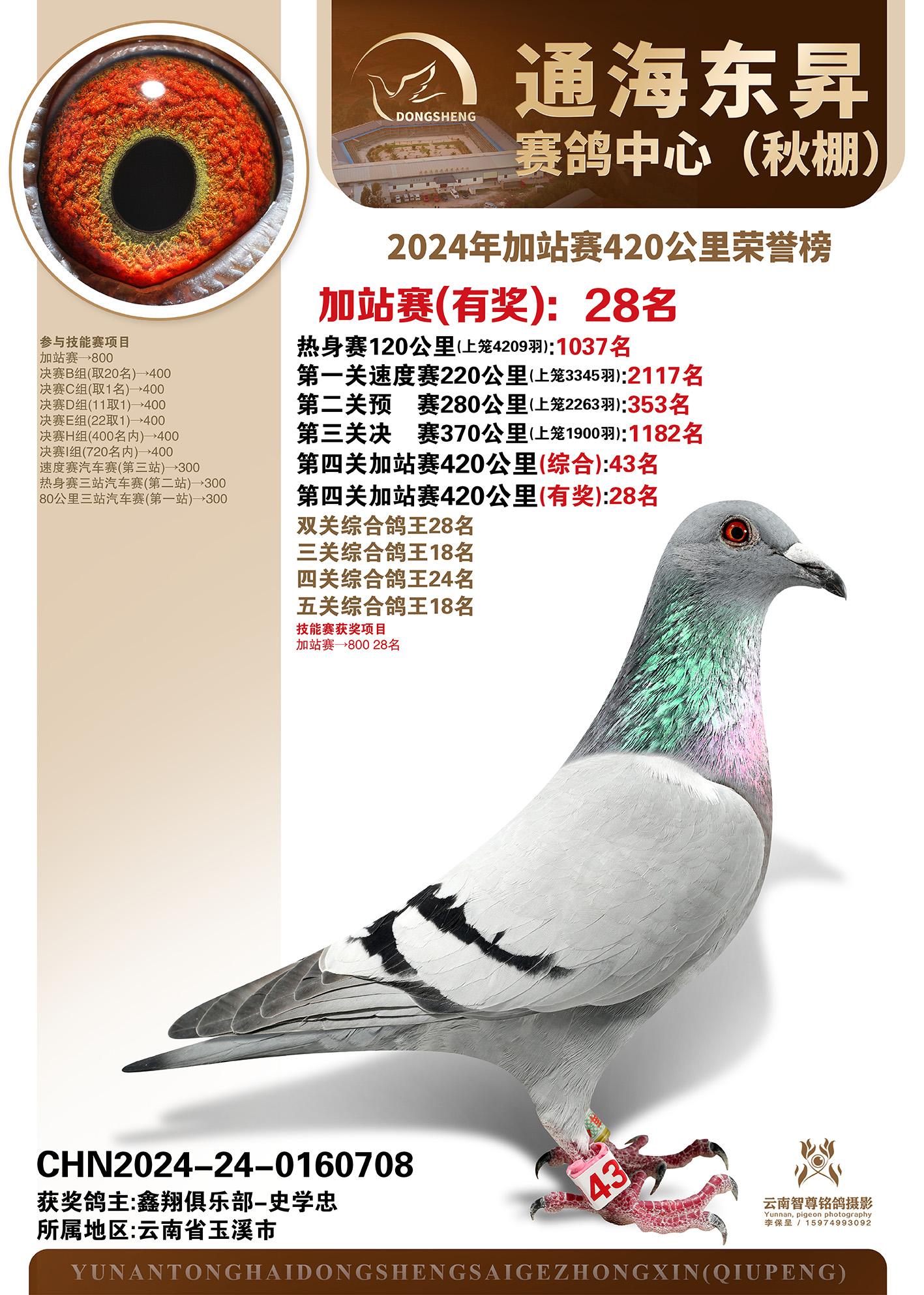 云南通海东昇赛鸽中心2024年加站赛420公里荣誉榜