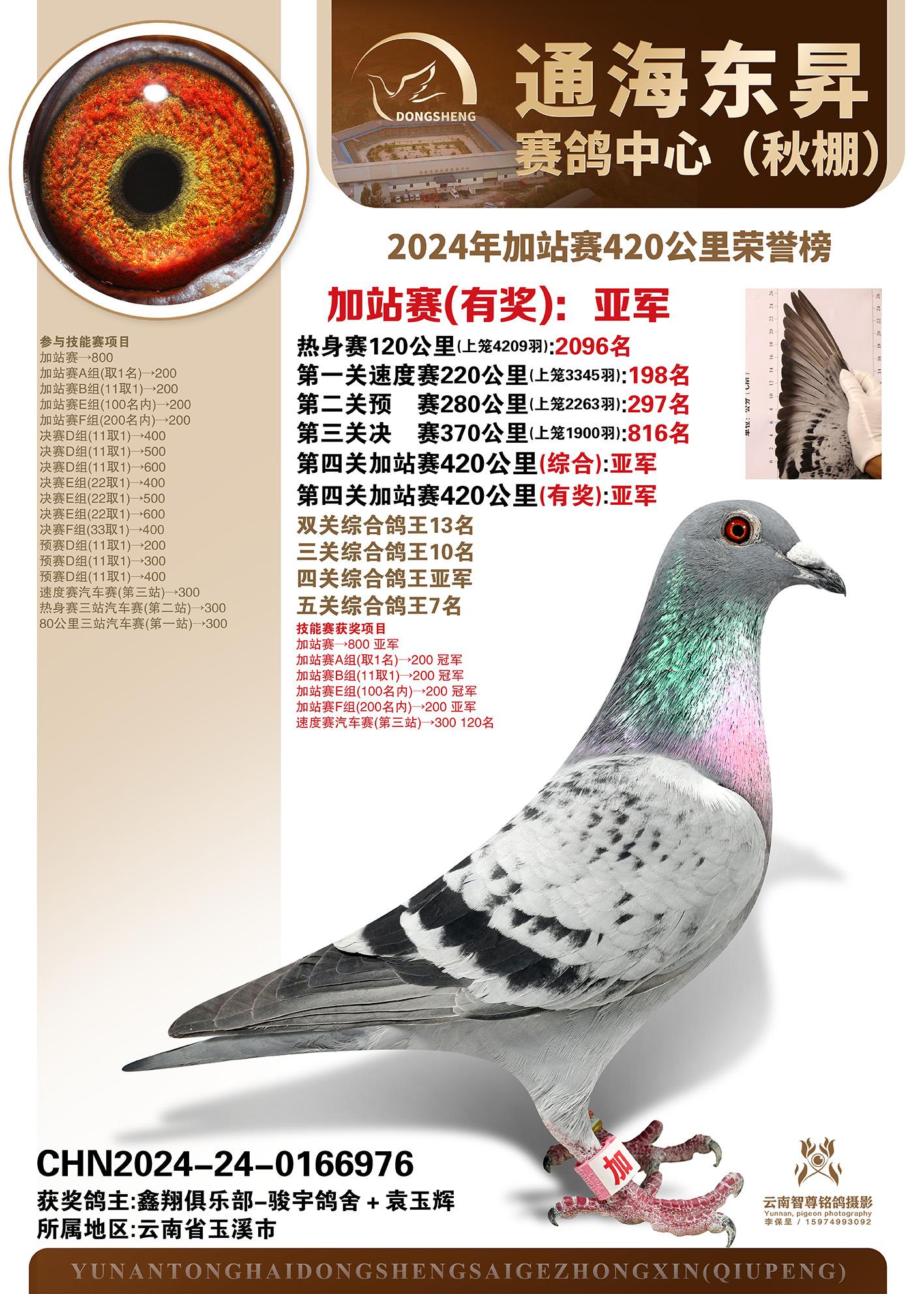 云南通海东昇赛鸽中心2024年加站赛420公里荣誉榜